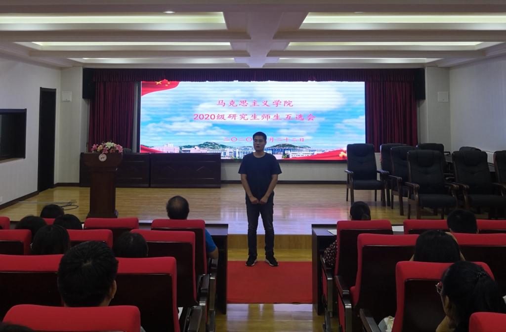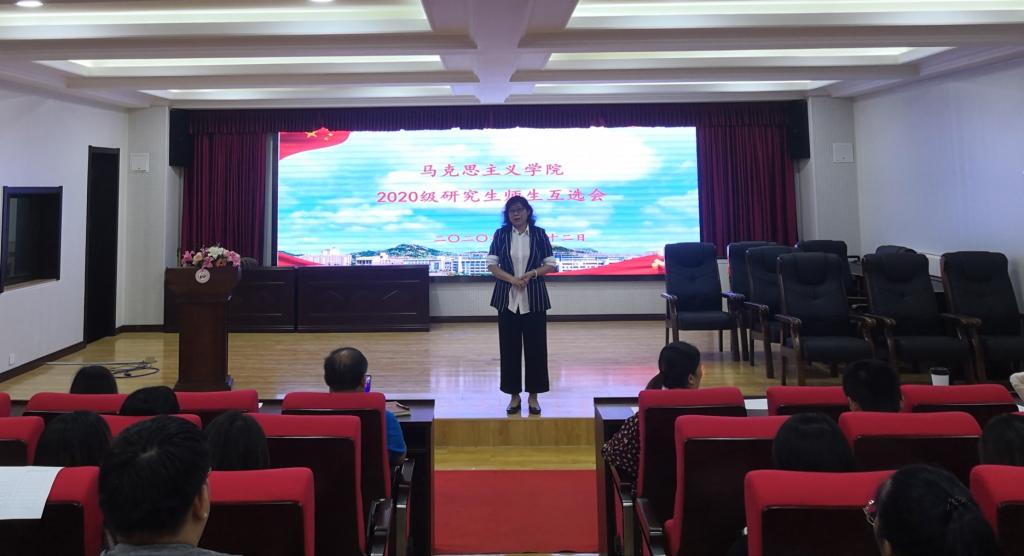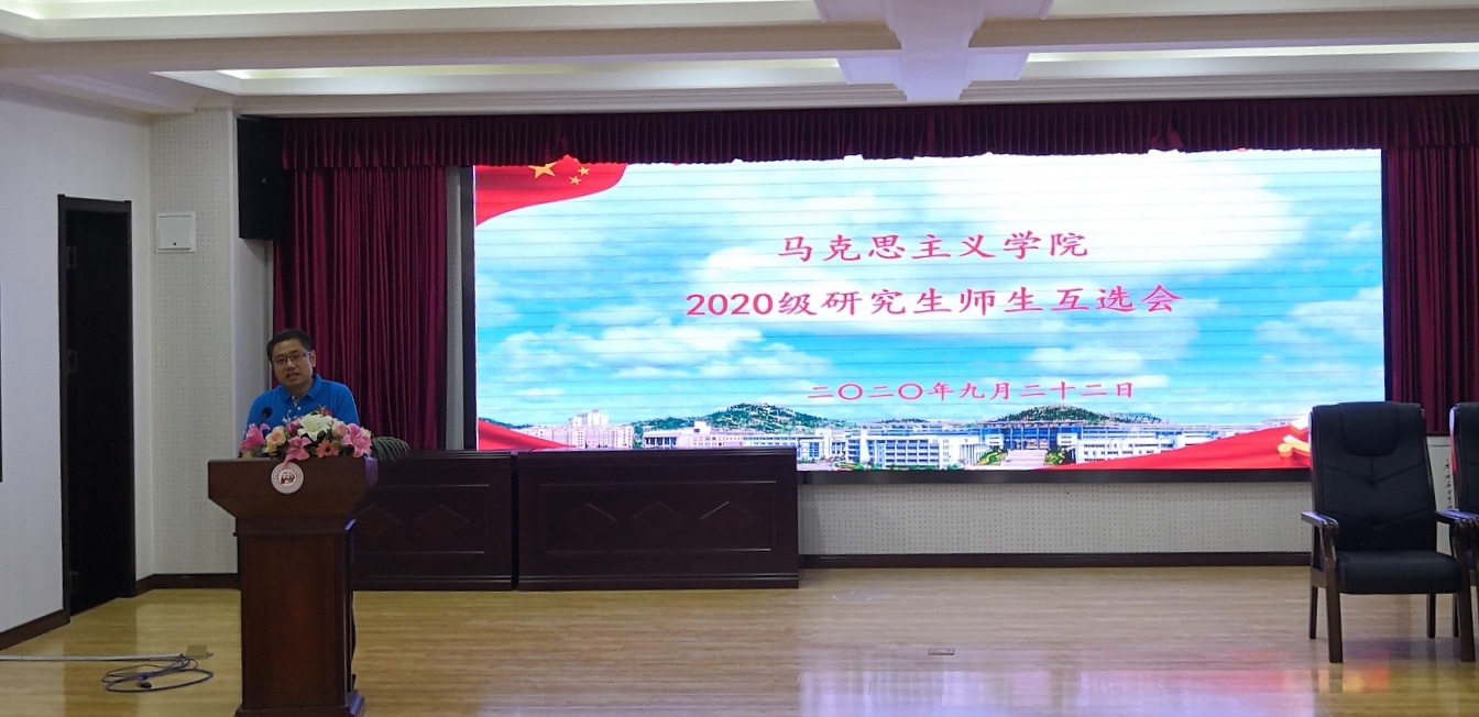 9月22日下午,馬克思主義學(xué)院2020級(jí)碩士研究生師生互選會(huì)于學(xué)術(shù)報(bào)告廳舉行,馬克思主義學(xué)院院長(zhǎng)曹勝、副院長(zhǎng)張運(yùn)君、曲慧敏,各學(xué)科研究生導(dǎo)師,教學(xué)秘書(shū)朱雪老師及2020級(jí)全體新生與會(huì),張運(yùn)君副院長(zhǎng)主持。