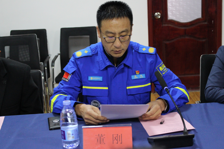 即墨藍(lán)天救援隊(duì)隊(duì)長董剛主持會(huì)議并講話,對(duì)與會(huì)領(lǐng)導(dǎo)和青島科技大學(xué)宣講團(tuán)成員表示熱烈地歡迎,并對(duì)即墨藍(lán)天救援隊(duì)工作開展情況做簡要匯報(bào)。
