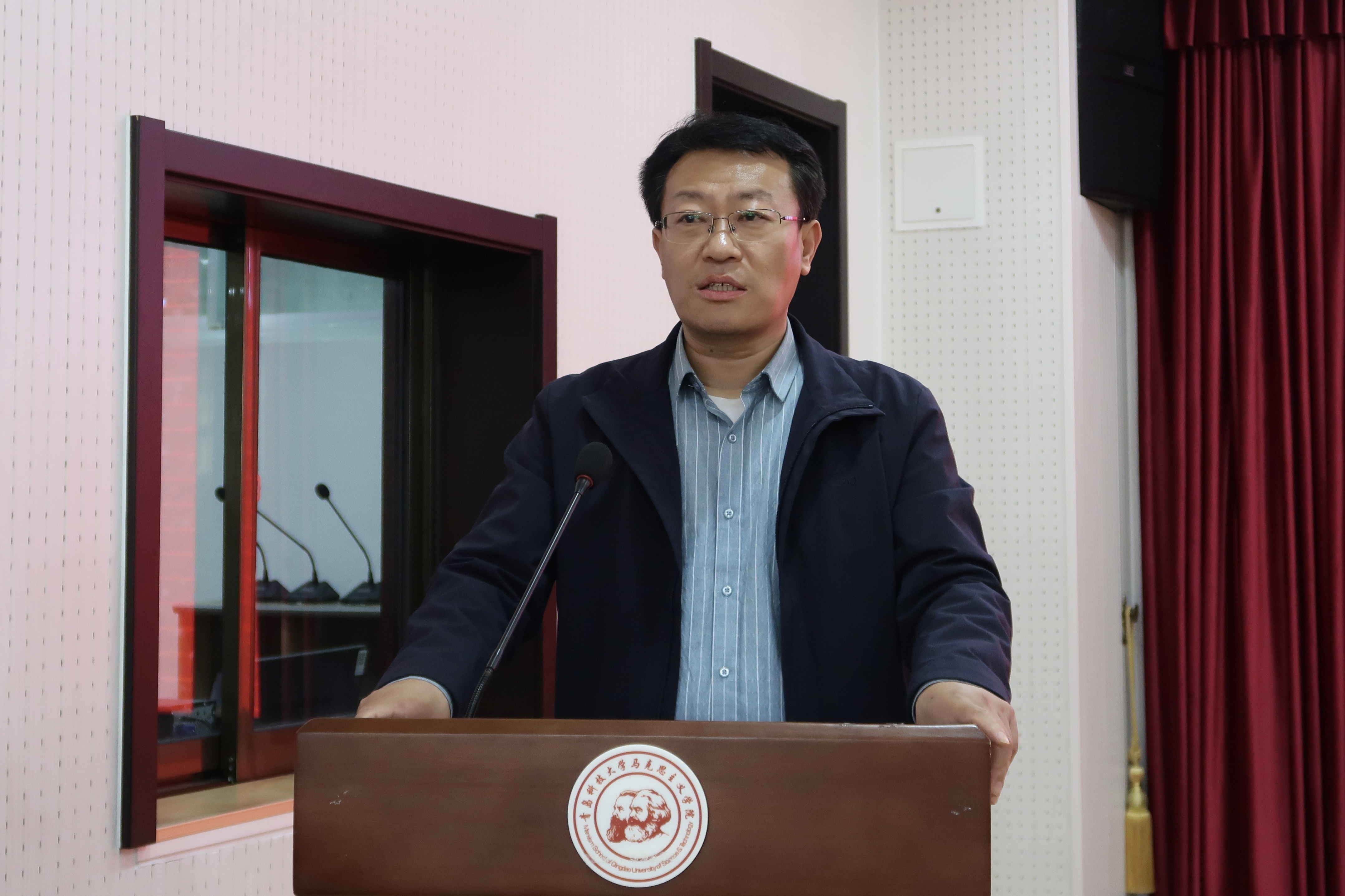 為深入學習貫徹中央八項規(guī)定精神,切實增強黨員干部遵規(guī)守紀意識,推動作風建設(shè)常態(tài)化、長效化,4月8日下午,青島科技大學馬克思主義學院特邀中共青島市委黨校校刊部主任牛月永教授于學院學術(shù)報告廳作《黨的作風建設(shè)永遠在路上——鍥而不舍深入貫徹中央八項規(guī)定精神》主題報告。報告會由馬克思主義學院黨總支書記李真主持,學院全體教職工和研究生黨員參加。