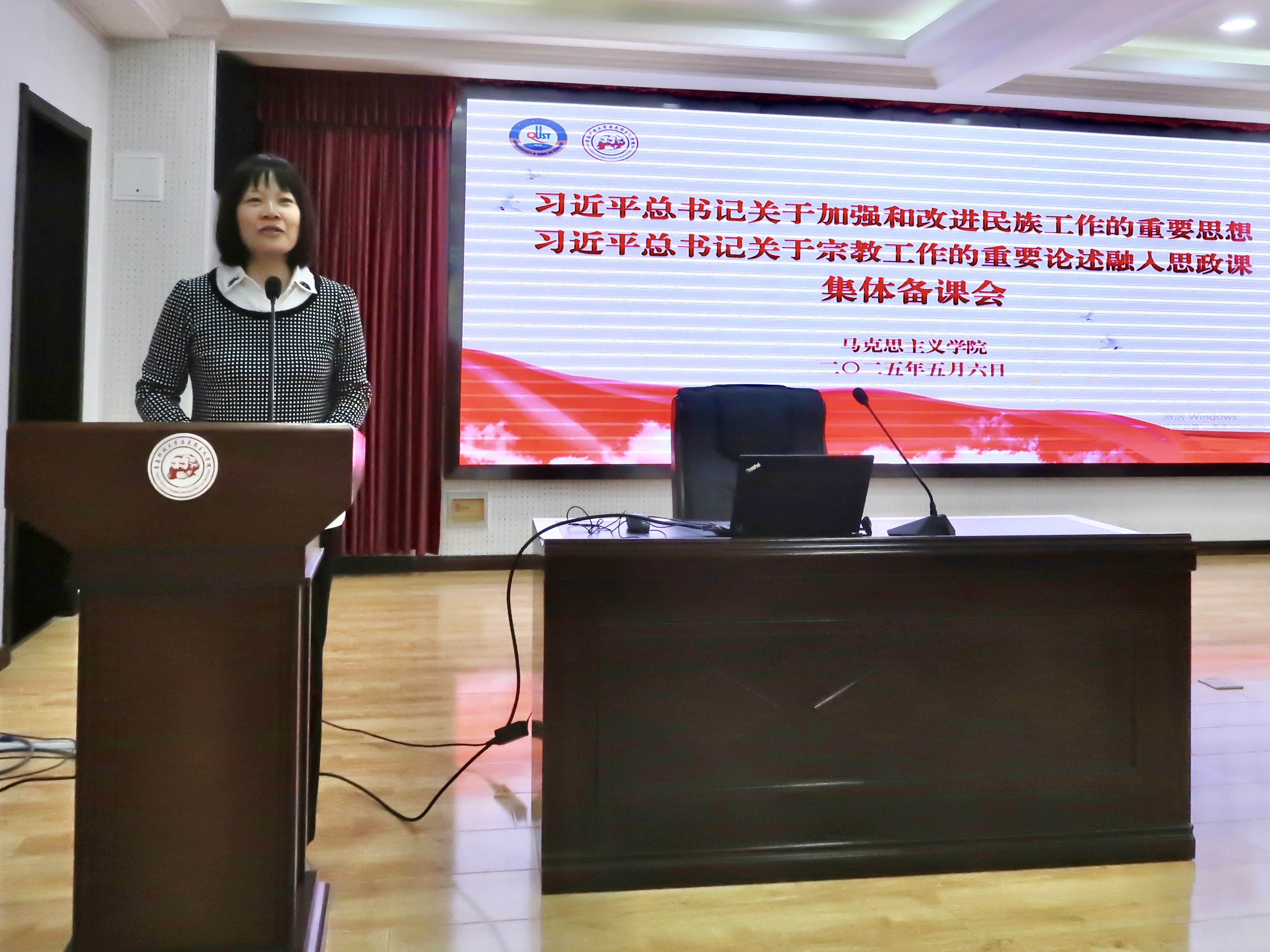 為全面貫徹落實習(xí)近平總書記關(guān)于加強和改進民族工作的重要思想和關(guān)于宗教工作的重要論述,推進新時代思政課改革創(chuàng)新,5月6日下午,馬克思主義學(xué)院于學(xué)術(shù)報告廳開展習(xí)近平總書記關(guān)于加強和改進民族工作的重要思想和關(guān)于宗教工作的重要論述融入思政課集體備課會。青島科技大學(xué)黨委常委、統(tǒng)戰(zhàn)部部長秦姣出席活動,會議由馬克思主義學(xué)院黨總支書記李真主持,學(xué)院全體師生參加此次會議。