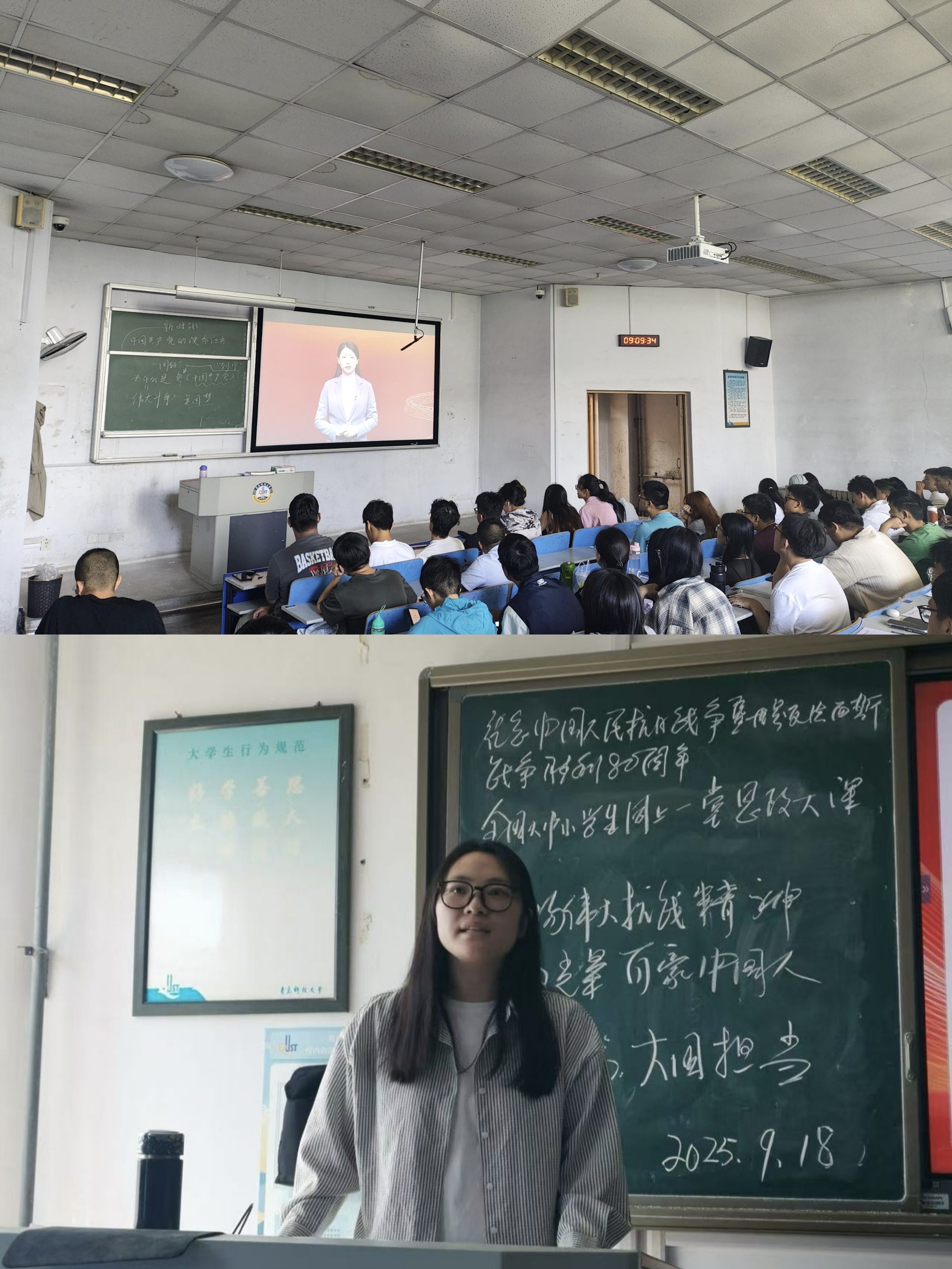 9月18日,為紀念中國人民抗日戰(zhàn)爭暨世界反法西斯戰(zhàn)爭勝利80周年,馬克思主義學院組織學生共同觀看由教育部、中央網(wǎng)信辦、人民日報社、國家文物局聯(lián)合主辦的面向全國大中小學生開講的“弘揚偉大抗戰(zhàn)精神,做光榮自豪中國人”思政大課大學篇:大國擔當。此次活動通過歷史回溯與現(xiàn)實聯(lián)結,為青年學子呈現(xiàn)了一堂深刻而生動的愛國主義教育課。