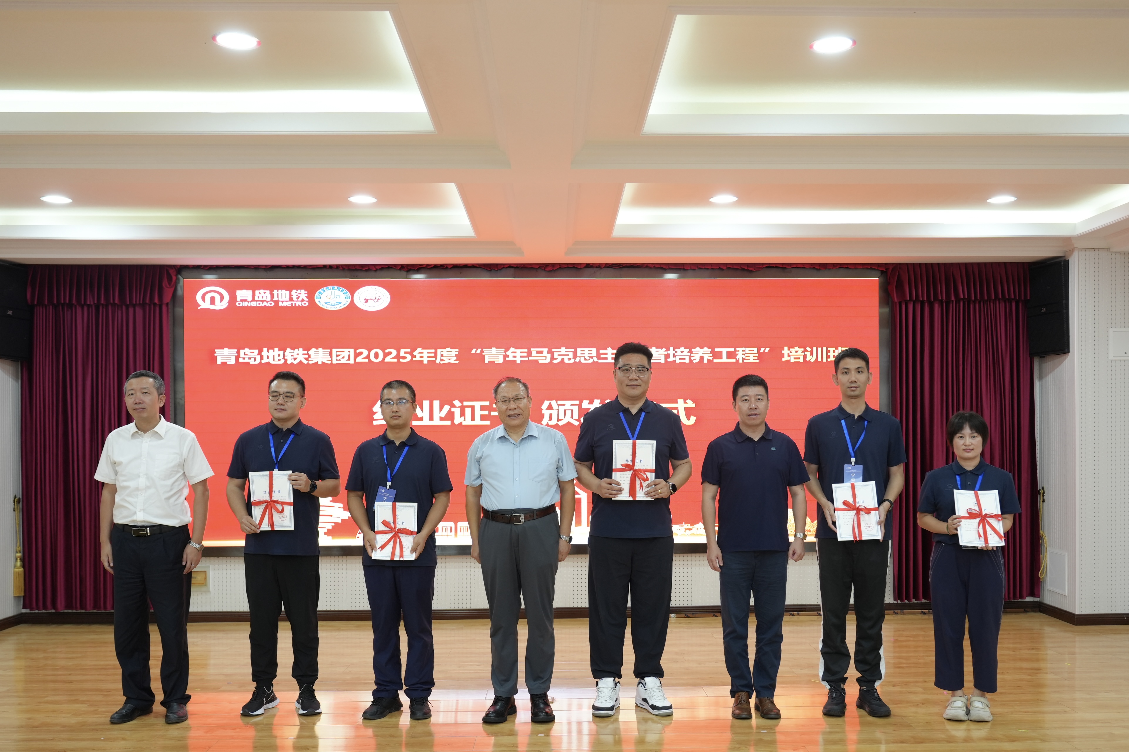 9月29日下午,青島地鐵集團(tuán)2025年“青年馬克思主義者培養(yǎng)工程”(以下簡(jiǎn)稱“青馬工程”)培訓(xùn)班結(jié)業(yè)儀式在青島科技大學(xué)馬克思主義學(xué)院報(bào)告廳舉行。青島地鐵集團(tuán)團(tuán)委副書(shū)記吳煜正,青鐵教育咨詢公司副總經(jīng)理常淼,青島科技大學(xué)馬克思主義學(xué)院黨總支副書(shū)記、院長(zhǎng)曹勝以及培訓(xùn)班全體學(xué)員出席儀式。