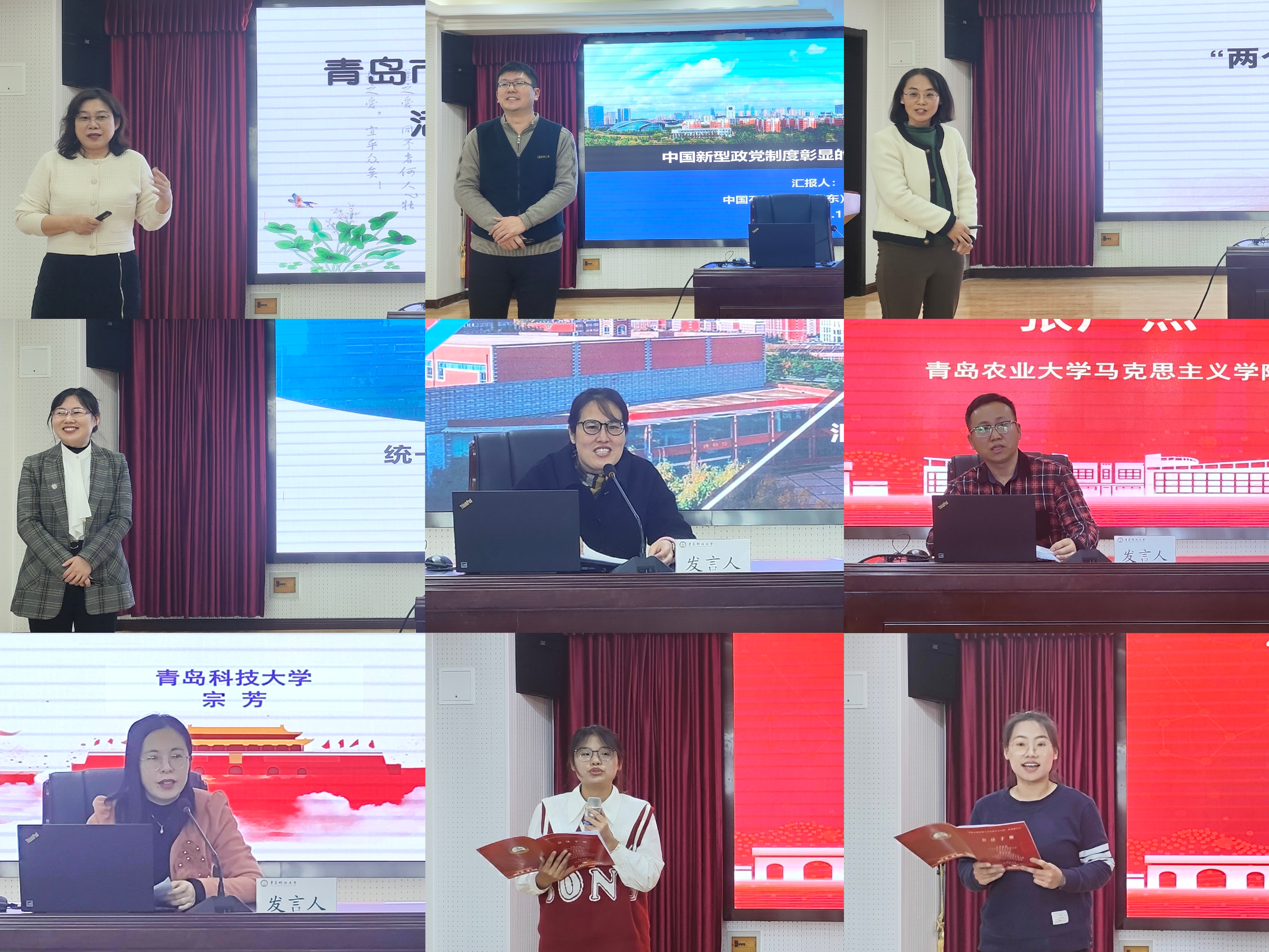 大會的交流發(fā)言環(huán)節(jié)由青島理工大學(xué)馬克思主義學(xué)院黨總支書記、教授、青島市歷史學(xué)會副會長陳國慶主持。青島科技大學(xué)馬克思主義學(xué)院李曉晨,中國石油大學(xué)(華東)馬克思主義學(xué)院畢松,青島農(nóng)業(yè)大學(xué)馬克思主義學(xué)院秦秋,青島理工大學(xué)馬克思主義學(xué)院宋彥葵,青島濱海學(xué)院馬克思主義學(xué)院朱萌,青島農(nóng)業(yè)大學(xué)馬克思主義學(xué)院張廣杰,青島科技大學(xué)馬克思主義學(xué)院宗芳,青島科技大學(xué)馬克思主義學(xué)院碩士研究生史超月,青島科技大學(xué)馬克思主義學(xué)院碩士研究生于洋,分別圍繞中國式現(xiàn)代化的發(fā)展歷程與實踐創(chuàng)新等議題進行交流發(fā)言。