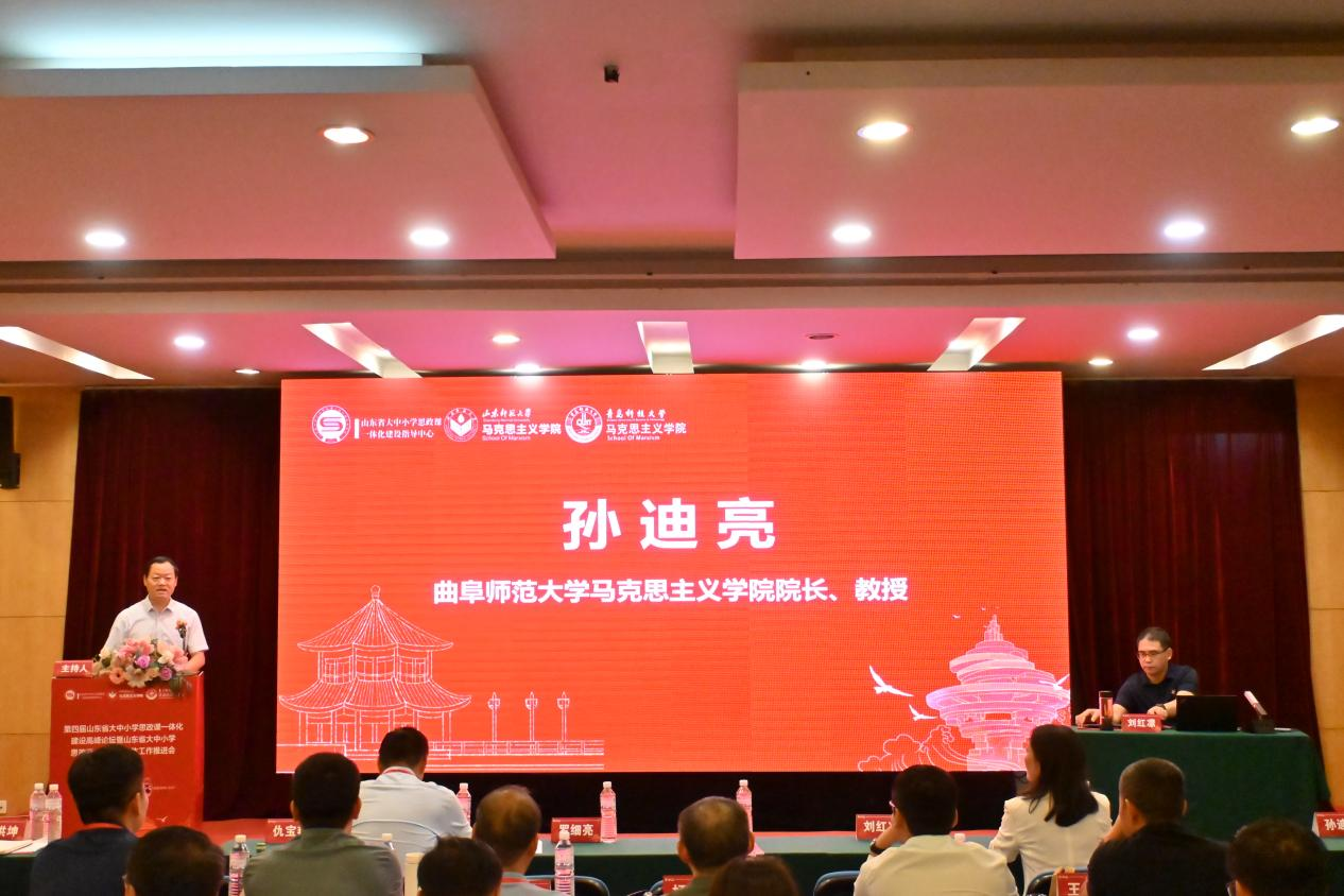 專家主題報告環(huán)節(jié)上半場由曲阜師范大學(xué)馬克思主義學(xué)院院長、山東省學(xué)校思政課教指委分教指委主任委員、山東省教學(xué)名師孫迪亮教授主持