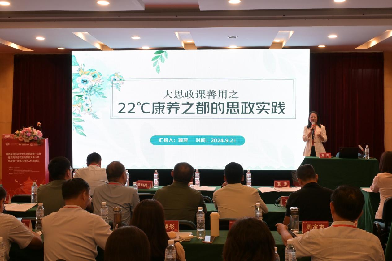 濟南市歷下區(qū)教育和體育局思政教育部主任孔萍以《歷下區(qū)大中小幼思政教育一體化建設(shè)的實踐探索》為題發(fā)言