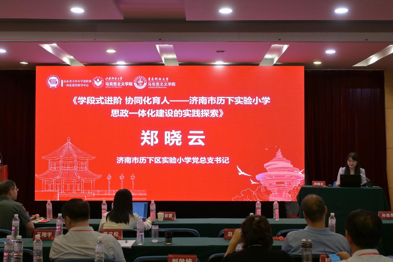 濟南市歷下區(qū)實驗小學(xué)黨總支書記鄭曉云以《學(xué)段式進階協(xié)同式發(fā)展——濟南市歷下實驗小學(xué)思政一體化建設(shè)的實踐探索》為題發(fā)言