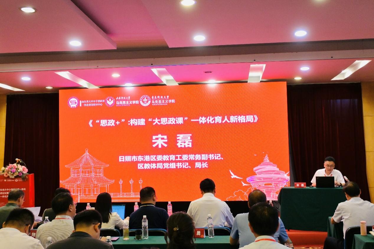 日照市東港區(qū)委教育工委常務(wù)副書記、區(qū)教體局黨組書記、局長宋磊以《“思政+”:溝通“大思政課”一體化育人新格局》為題發(fā)言