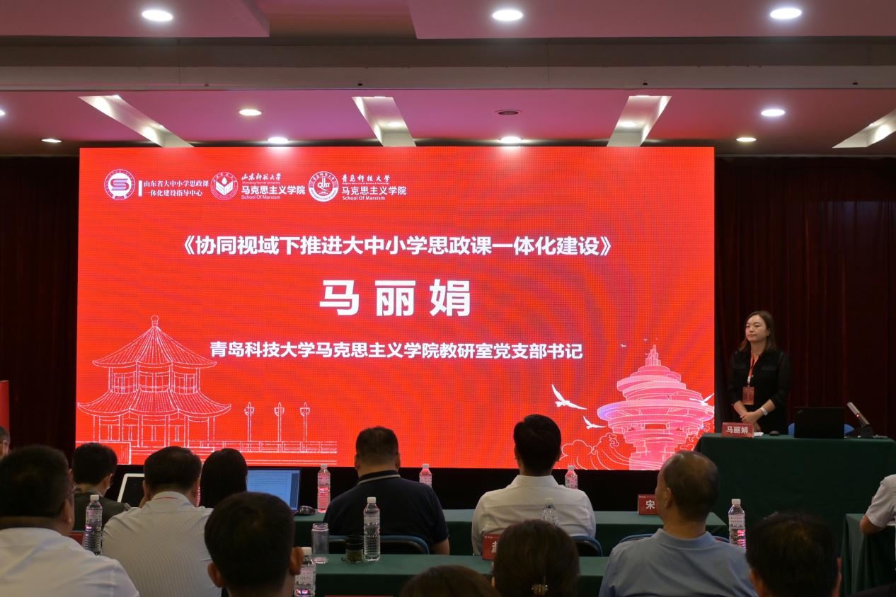 青島科技大學(xué)馬克思主義學(xué)院教研室黨支部書記馬麗娟以《協(xié)同視域下推進大中小學(xué)思政課一體化建設(shè)》為題發(fā)言