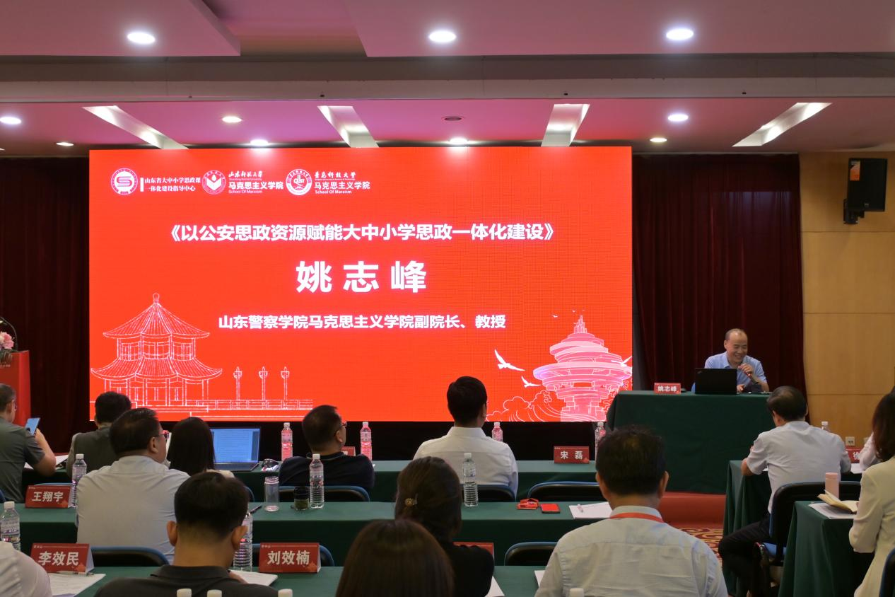 山東警察學(xué)院馬克思主義學(xué)院副院長姚志峰教授以《以公安思政賦能大中小學(xué)思政一體化建設(shè)》為題發(fā)言