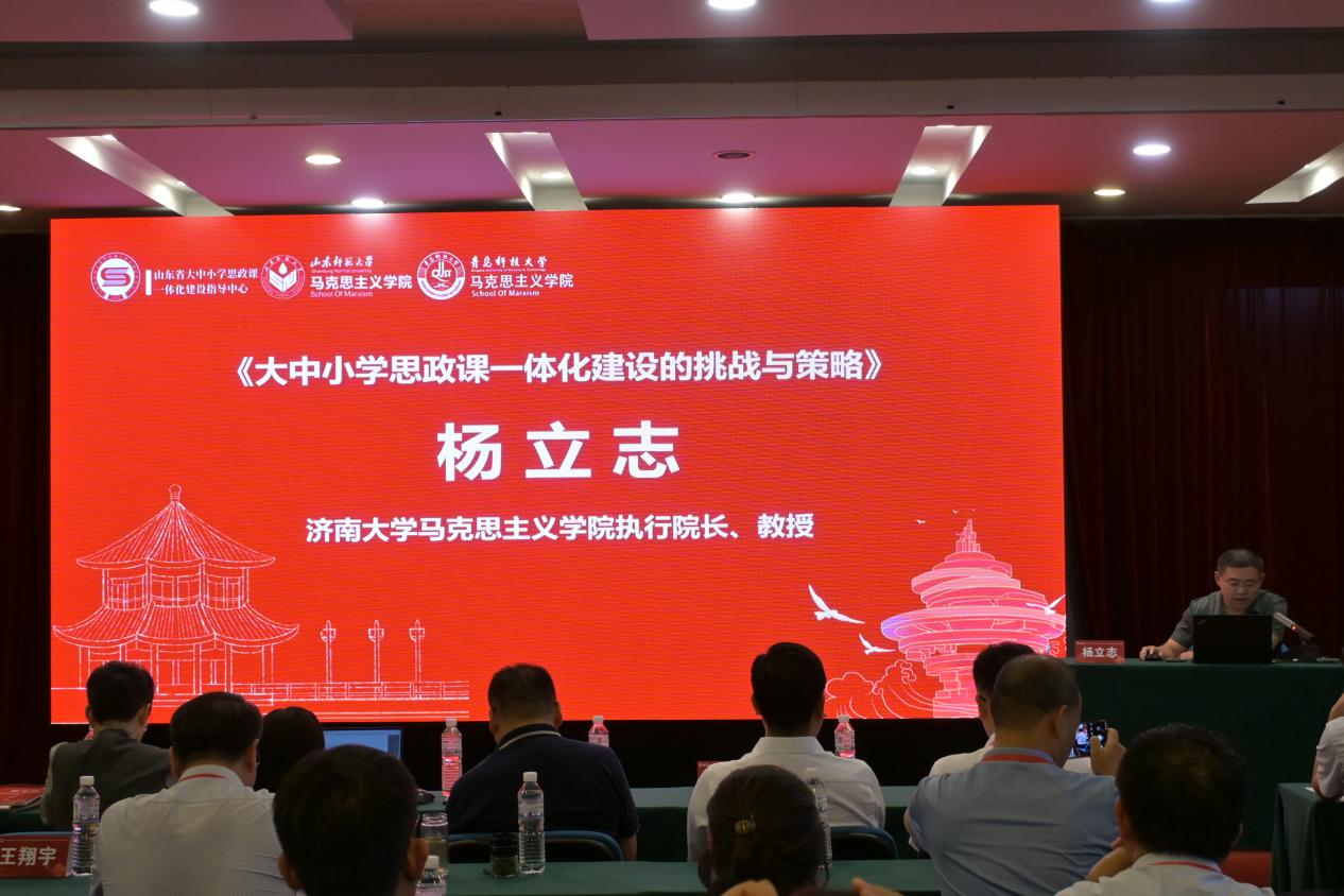 濟南大學(xué)馬克思主義學(xué)院執(zhí)行院長楊立志教授以《大中小學(xué)思政課一體化建設(shè)的挑戰(zhàn)與策略》為題發(fā)言