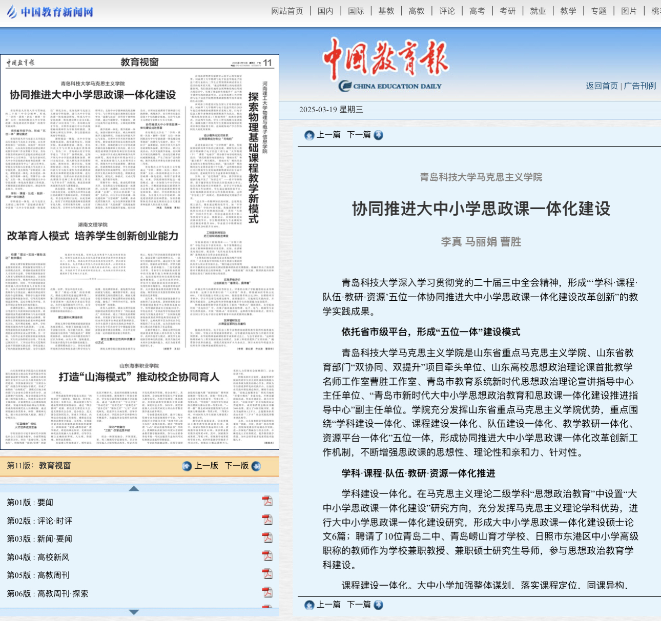 青島科技大學(xué)深入學(xué)習(xí)貫徹黨的二十屆三中全會(huì)精神,形成“‘學(xué)科·課程·隊(duì)伍·教研·資源’五位一體協(xié)同推進(jìn)大中小學(xué)思政課一體化建設(shè)改革創(chuàng)新”的教學(xué)實(shí)踐成果。