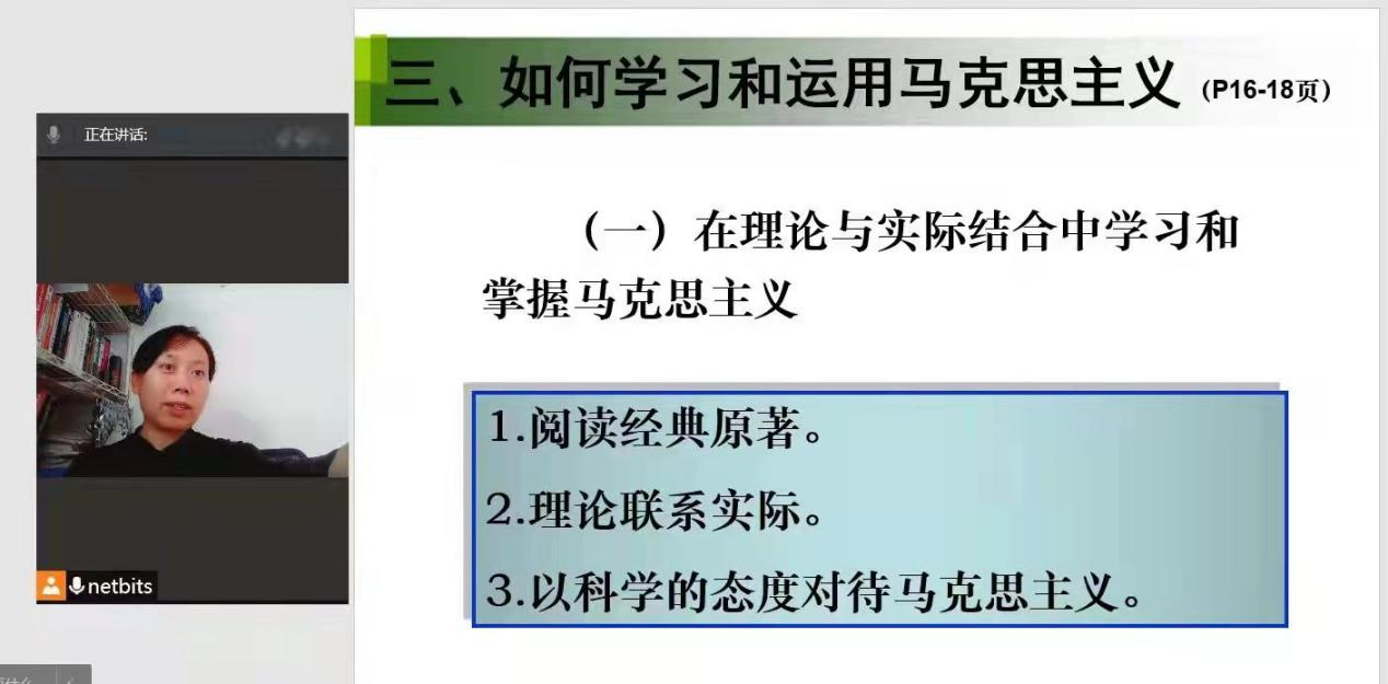 通過總結(jié)學(xué)習(xí)抗疫過程中習(xí)近平總書記的一系列重要講話精神,深刻把握抗疫精神的具體內(nèi)涵,馬原理教研室的教師結(jié)合馬克思主義基本原理課教材,將馬克思主義基本原理與抗疫精神有機(jī)融合,以抗疫過程中感人具體的生動事跡作為案例,在課堂教學(xué)中有針對性地對大學(xué)生開展馬克思主義基本理論的教育。例如在第一章第一節(jié)講到意識對物質(zhì)的反作用。抗疫精神詮釋了馬克思主義意識能動性的基本原理。“人無精神則不立,國無精神則不強(qiáng)。唯有精神上站得住、站得穩(wěn),一個(gè)民族才能在歷史洪流中屹立不倒、挺立潮頭。同困難作斗爭,是物質(zhì)的角力,也是精神的對壘”。 中國人民所表現(xiàn)出的偉大抗疫精神生動詮釋了馬克思主義意識能動性的基本原理,向全世界展現(xiàn)了新時(shí)代的中國精神。在第三章第三節(jié)講到群眾史觀、群眾路線。在課堂講授中結(jié)合抗疫中的英雄事跡和英雄精神深化人民群眾是歷史創(chuàng)造者的基本觀點(diǎn)。人民群眾是歷史的創(chuàng)造者,這是馬克思主義政黨最堅(jiān)實(shí)的理論基礎(chǔ)。一切為了人民、一切依靠人民,是中國共產(chǎn)黨執(zhí)政的力量源泉。“人民至上,生命至上”。在抗擊疫情中,習(xí)近平總書記多次強(qiáng)調(diào)把人民群眾生命安全和身體健康放在第一位,這正是馬克思主義政黨人民性的最好詮釋,凸顯了馬克思主義理論的引領(lǐng)性和指導(dǎo)性。