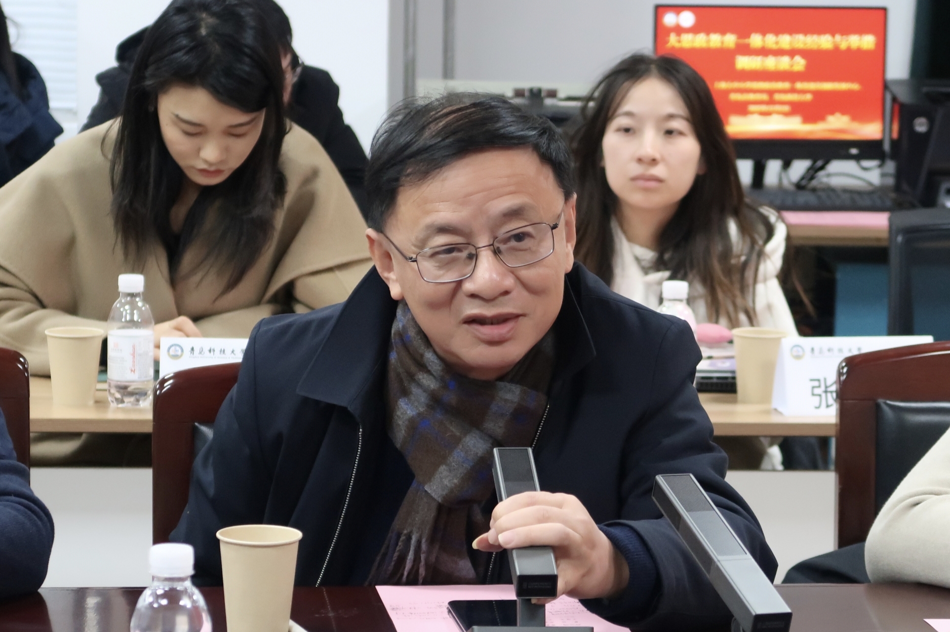 在自由交流環(huán)節(jié),勞曉蕓就思政宣講工作的落地實(shí)施提問。曹勝回應(yīng)介紹了青島科技大學(xué)組建專門宣講團(tuán)、實(shí)地考察與專題報(bào)告等形式,系統(tǒng)推進(jìn)宣講工作,并將相關(guān)成效納入教師育人評價體系的實(shí)踐經(jīng)驗(yàn)。上海市教師教育學(xué)院于漪教育教學(xué)思想研究部副部長陳霞重點(diǎn)介紹了上海思政課一體化建設(shè)的舉措,包括立法保障校外實(shí)踐、加強(qiáng)教師分層培養(yǎng)與智能教研平臺建設(shè)等內(nèi)容。上海大中小學(xué)思想政治教育一體化建設(shè)創(chuàng)新發(fā)展中心兼職研究員、上海市教委德育處調(diào)研員鄒竑補(bǔ)充說明了上海構(gòu)建校內(nèi)外協(xié)同思政教育體系的歷程,強(qiáng)調(diào)以紅色資源與跨學(xué)科項(xiàng)目為依托搭建實(shí)踐平臺。上海科技大學(xué)副校長吳強(qiáng)指出會議研討深入,強(qiáng)調(diào)教育改革應(yīng)注重學(xué)術(shù)研究與政策銜接,并探索人工智能在思政教育中的應(yīng)用前景。