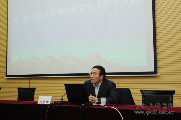 26日下午,中共青島市委黨校、青島行政學(xué)院教授,管理教研部副主任劉文儉教授應(yīng)邀做了題為《以十八大精神引領(lǐng)青科大科學(xué)發(fā)展》的專題報告。報告中,劉文儉闡述了十八大的主要成果和主題、十八大的突出亮點重點和中央關(guān)于學(xué)習(xí)貫徹十八大精神的要求。他認(rèn)為,結(jié)合實際情況,學(xué)校要確立“世界眼光、國際標(biāo)準(zhǔn)、本土優(yōu)勢”的總體思路,融入、對接、服務(wù)地方經(jīng)濟(jì)社會發(fā)展,堅持以人為本的理念,樹立科學(xué)發(fā)展的意識,強(qiáng)化先進(jìn)的管理理念,建立科學(xué)的管理制度,培育特色的競爭優(yōu)勢,以十八大精神引領(lǐng)青島科技大學(xué)科學(xué)發(fā)展。