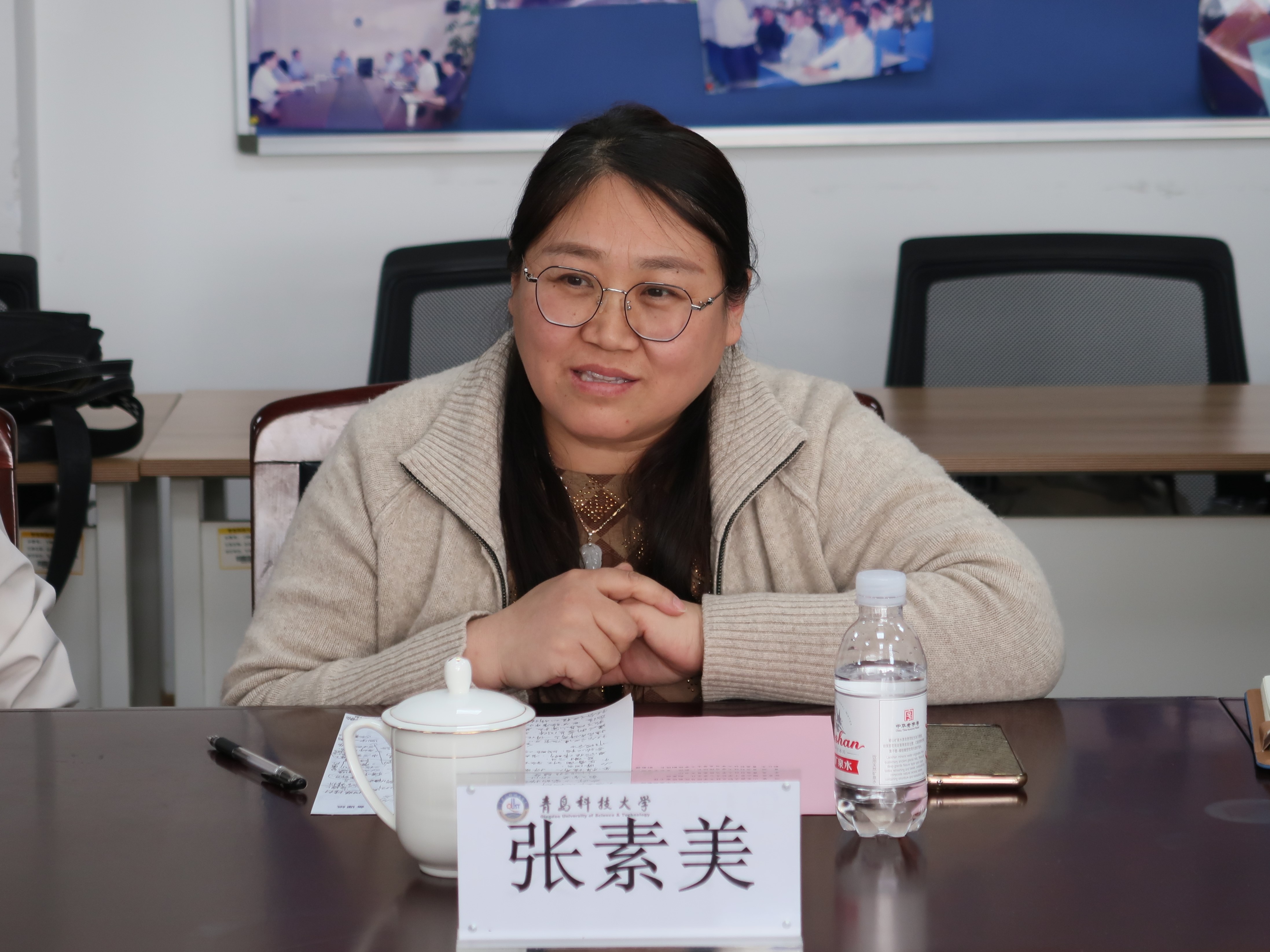 嶗山育才學(xué)校辦公室主任張素美介紹了嶗山育才學(xué)校大中小學(xué)思政課一體化建設(shè)情況,并就雙研提升、三課聯(lián)動的高校思政課聯(lián)動共建思路進(jìn)行交流分享。