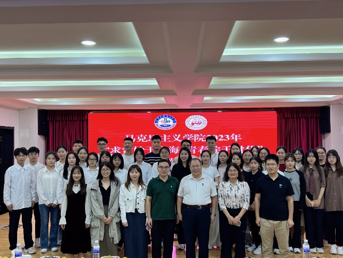 蘭葉春葳蕤,桂華秋皎潔。9月25日晚,馬克思主義學(xué)院“求索始于山海,青春綻于時(shí)代”2023年慶雙節(jié)聯(lián)歡會(huì)暨迎新晚會(huì)在學(xué)術(shù)報(bào)告廳成功舉辦。馬克思主義學(xué)院黨總支書記張鳴,院長曹勝,副院長曲慧敏、郭江龍,中國近現(xiàn)代史教研室主任王建美、思想道德修養(yǎng)與法治教研室副主任劉寶福,輔導(dǎo)員兼2022級班主任車舒雨、2023級班主任閆鑫淇及全體研究生參加此次活動(dòng)。活動(dòng)由2023級研究生秦永杰、席小榮主持。
