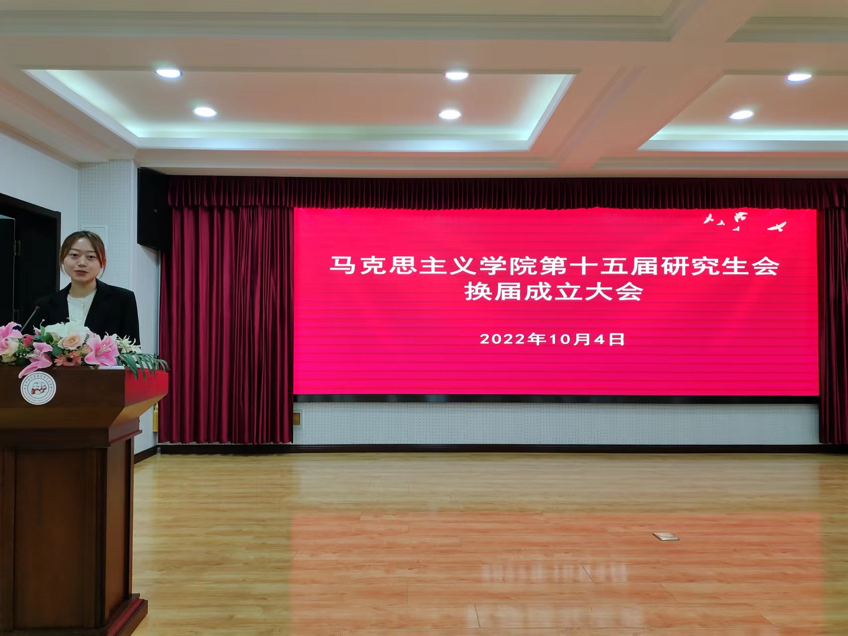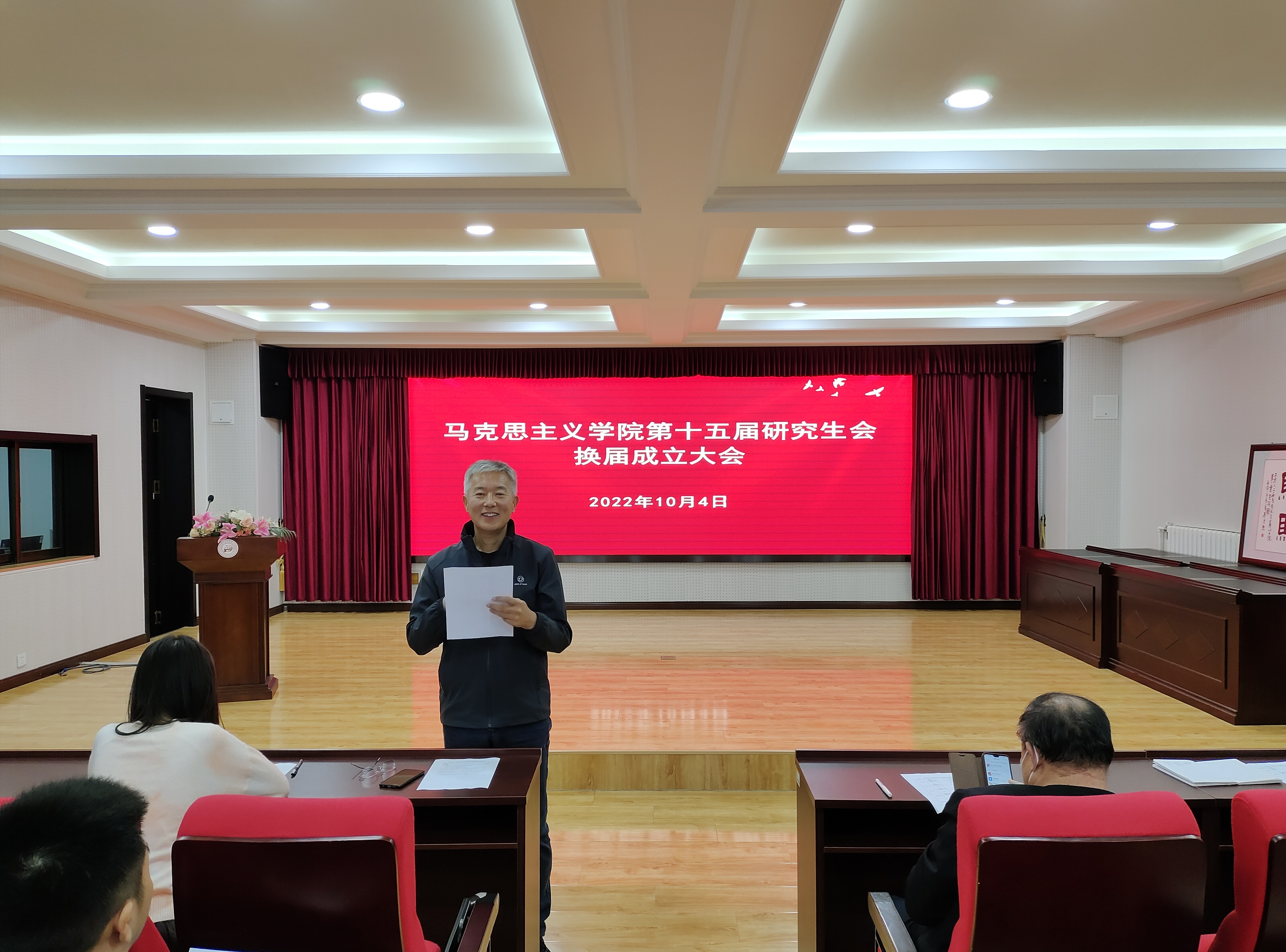 10月4日下午,馬克思主義學(xué)院在學(xué)院報(bào)告廳舉行第十五屆研究生會(huì)換屆成立大會(huì)。馬克思主義學(xué)院黨總支書記張鳴,院長(zhǎng)兼黨總支副書記曹勝,2022級(jí)班主任車舒雨,學(xué)院團(tuán)總支書記李瑩蔚,第十四屆研究生會(huì)骨干成員、第十五屆研究生會(huì)全體成員參加會(huì)議。本次會(huì)議由2022級(jí)研究生李婷婷主持。