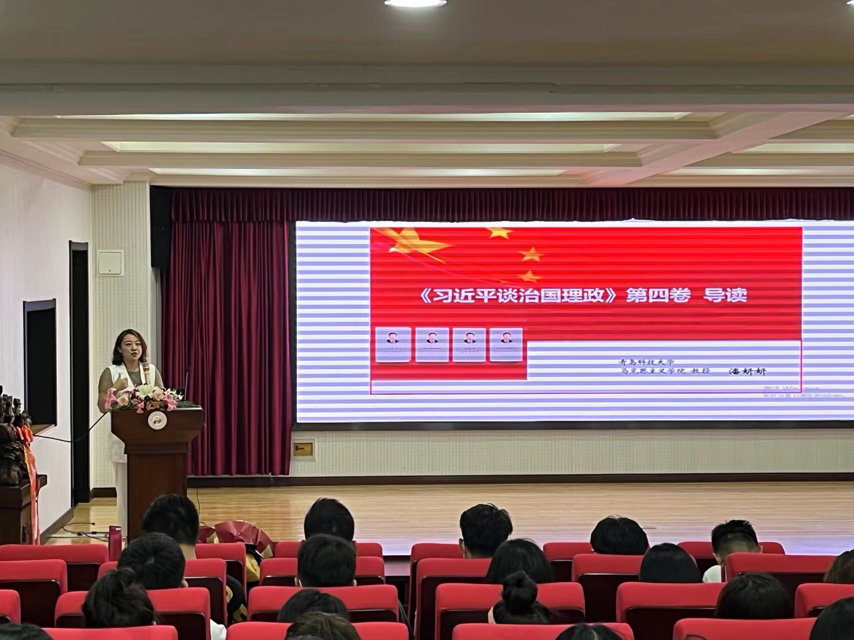 最后,潘妍妍教授為全體研究生作《習近平談治國理政》第四卷導讀的學術(shù)報告,梳理了《習近平談治國理政》一到四卷的邏輯脈絡,詳細介紹了《習近平談治國理政》第四卷的總體內(nèi)容。