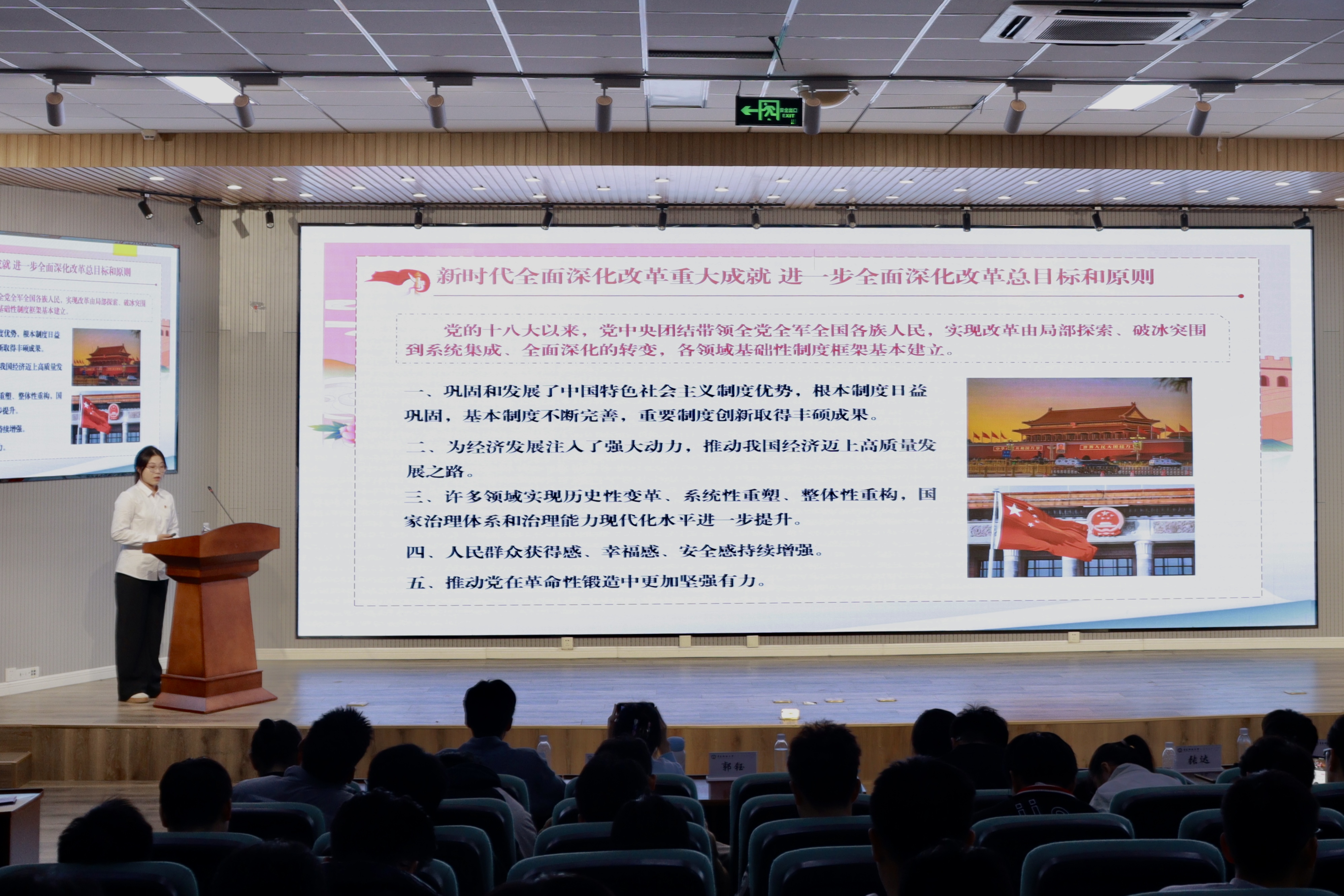 實(shí)踐出真知,宣講啟新思。此次主題宣講活動(dòng),不僅加深了同學(xué)們對(duì)黨的二十屆三中全會(huì)精神的理解和認(rèn)識(shí),還進(jìn)一步點(diǎn)燃了大家心中的理想之火。同學(xué)們紛紛表示,要認(rèn)真學(xué)習(xí)領(lǐng)會(huì)黨的二十屆三中全會(huì)精神,切實(shí)把思想和行動(dòng)統(tǒng)一到黨中央的決策部署上來,以更加昂揚(yáng)的姿態(tài),切實(shí)投身到學(xué)習(xí)和工作中,為推進(jìn)中國式現(xiàn)代化貢獻(xiàn)青春力量。
