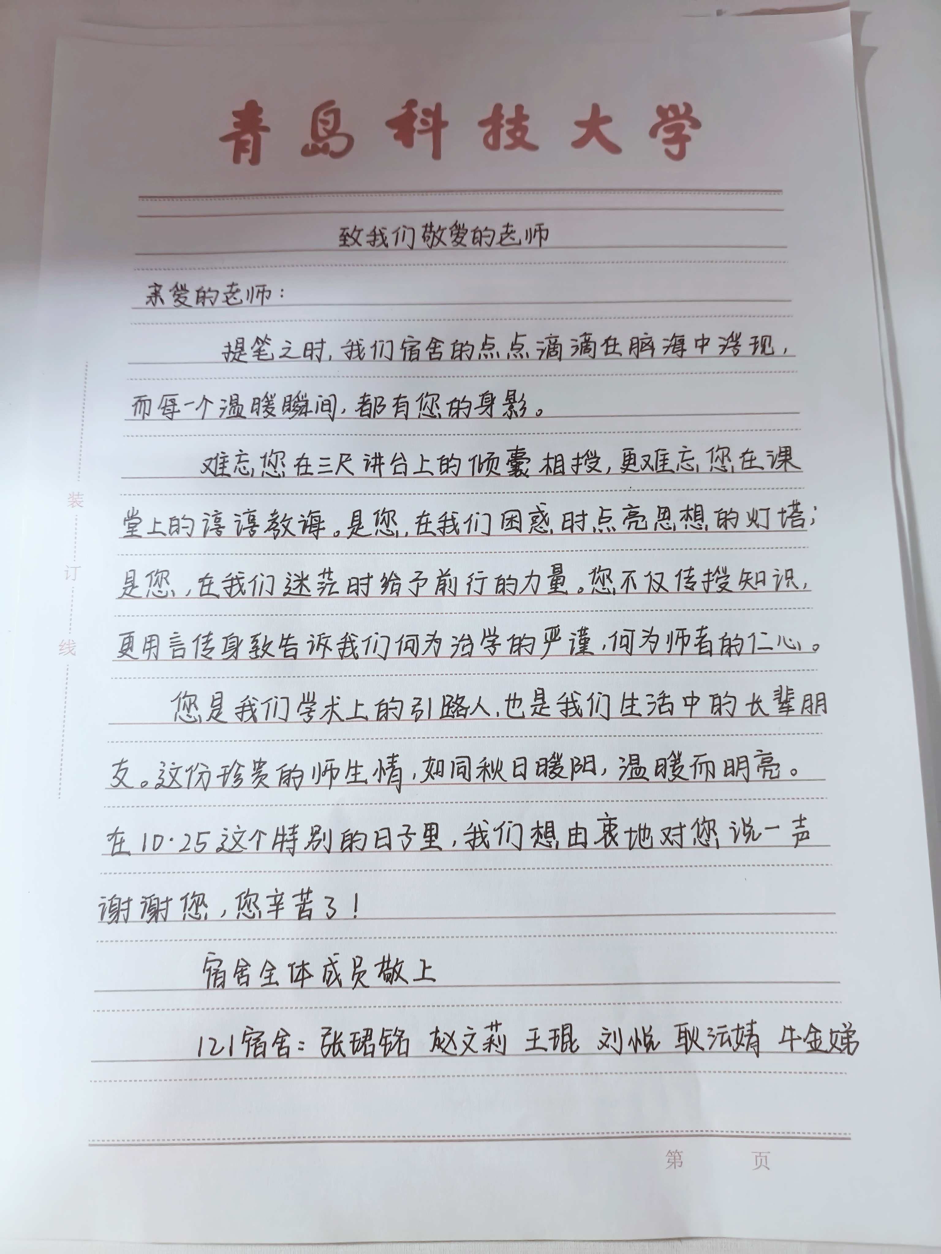 各宿舍充分發(fā)揮集體智慧與創(chuàng)意,作品形式豐富多樣,每一份作品都凝聚著宿舍成員的共同心意,成為承載師生情誼的珍貴載體,盡顯馬院學(xué)子對(duì)恩師的深厚情感,切實(shí)推動(dòng)形成“尊師、愛(ài)師、敬師、親師”的濃厚院風(fēng)。