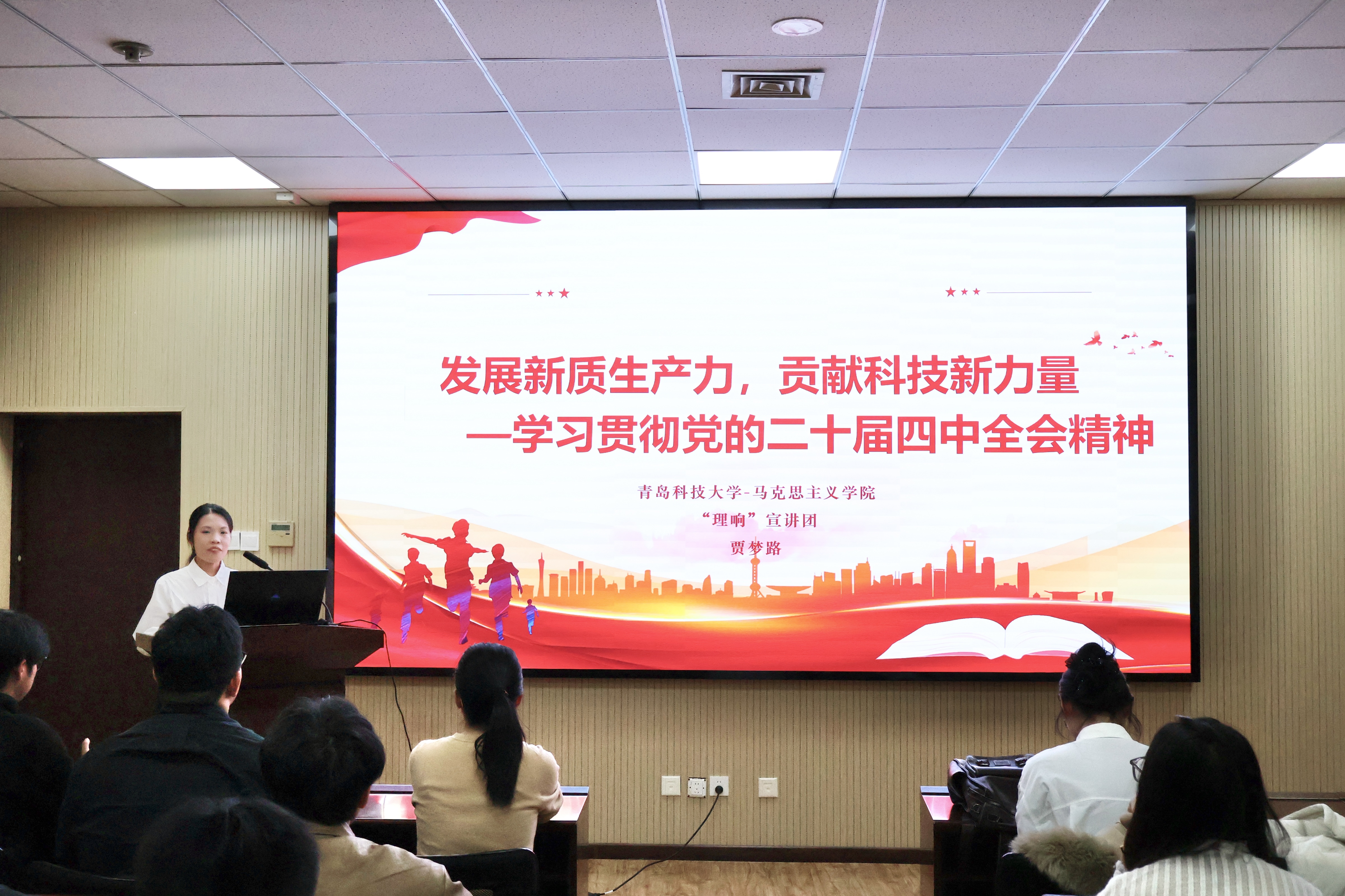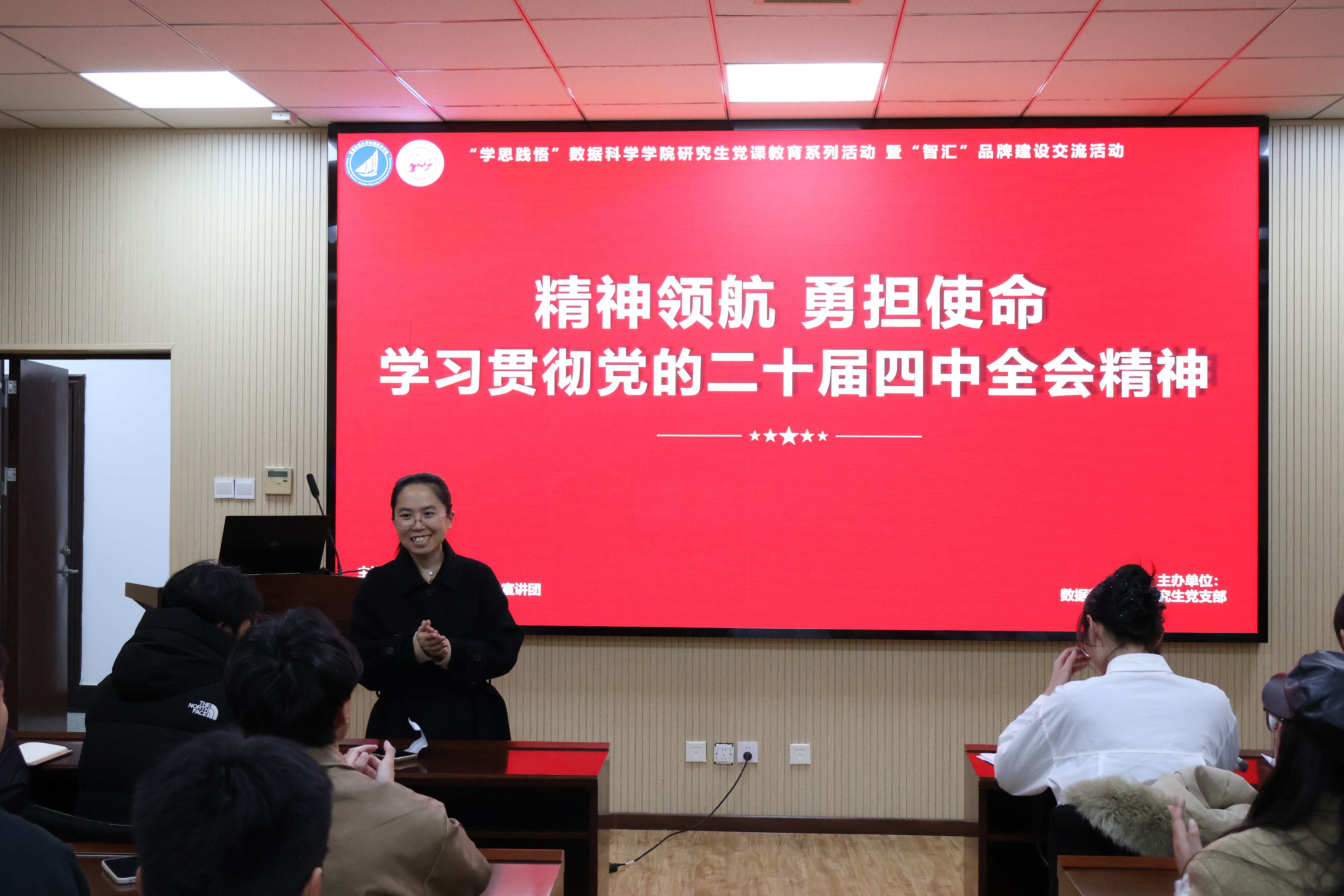 “理響”宣講團(tuán)成員黃佳佳、賈夢路在數(shù)據(jù)科學(xué)學(xué)院作學(xué)習(xí)貫徹黨的二十屆四中全會精神主題宣講。黃佳佳回顧了“十四五”時(shí)期我國在經(jīng)濟(jì)發(fā)展、創(chuàng)新驅(qū)動(dòng)等多方面取得的重大成就,深刻闡釋了黨中央關(guān)于國內(nèi)外形勢的基本判斷以及“十五五”時(shí)期經(jīng)濟(jì)社會發(fā)展的指導(dǎo)思想、主要目標(biāo)、重大原則和重要部署,并號召大家以歷史主動(dòng)精神應(yīng)對風(fēng)險(xiǎn)挑戰(zhàn),共同開創(chuàng)中國式現(xiàn)代化建設(shè)新局面。賈夢路圍繞黨的二十屆四中全會,重點(diǎn)闡述了“十四五”時(shí)期我國在科技領(lǐng)域取得的重大成就以及未來五年科技發(fā)展的戰(zhàn)略部署,呼吁青年學(xué)生勇?lián)鷷r(shí)代使命,積極投身科技強(qiáng)國建設(shè)。
