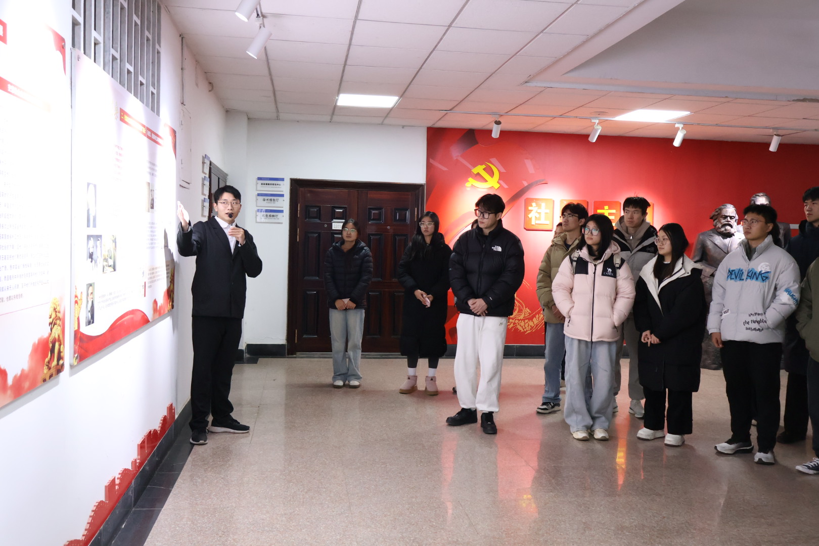 馬克思主義學(xué)院“理響”宣講團(tuán)成員秦士河、高原作“社會主義五百年”展板宣講。秦士河、高原清晰地梳理了社會主義從空想到科學(xué)、從理論到實(shí)踐、從一國實(shí)踐到多國發(fā)展、從遭遇挫折到中國特色社會主義煥發(fā)蓬勃生機(jī)的宏大歷史進(jìn)程。展板宣講為同學(xué)們深刻認(rèn)識社會主義發(fā)展的曲折性與必然性,理解中國特色社會主義的歷史邏輯、理論邏輯和實(shí)踐邏輯,為深入學(xué)習(xí)貫徹黨的最新理論成果奠定了堅(jiān)實(shí)的歷史與思想基礎(chǔ)。
