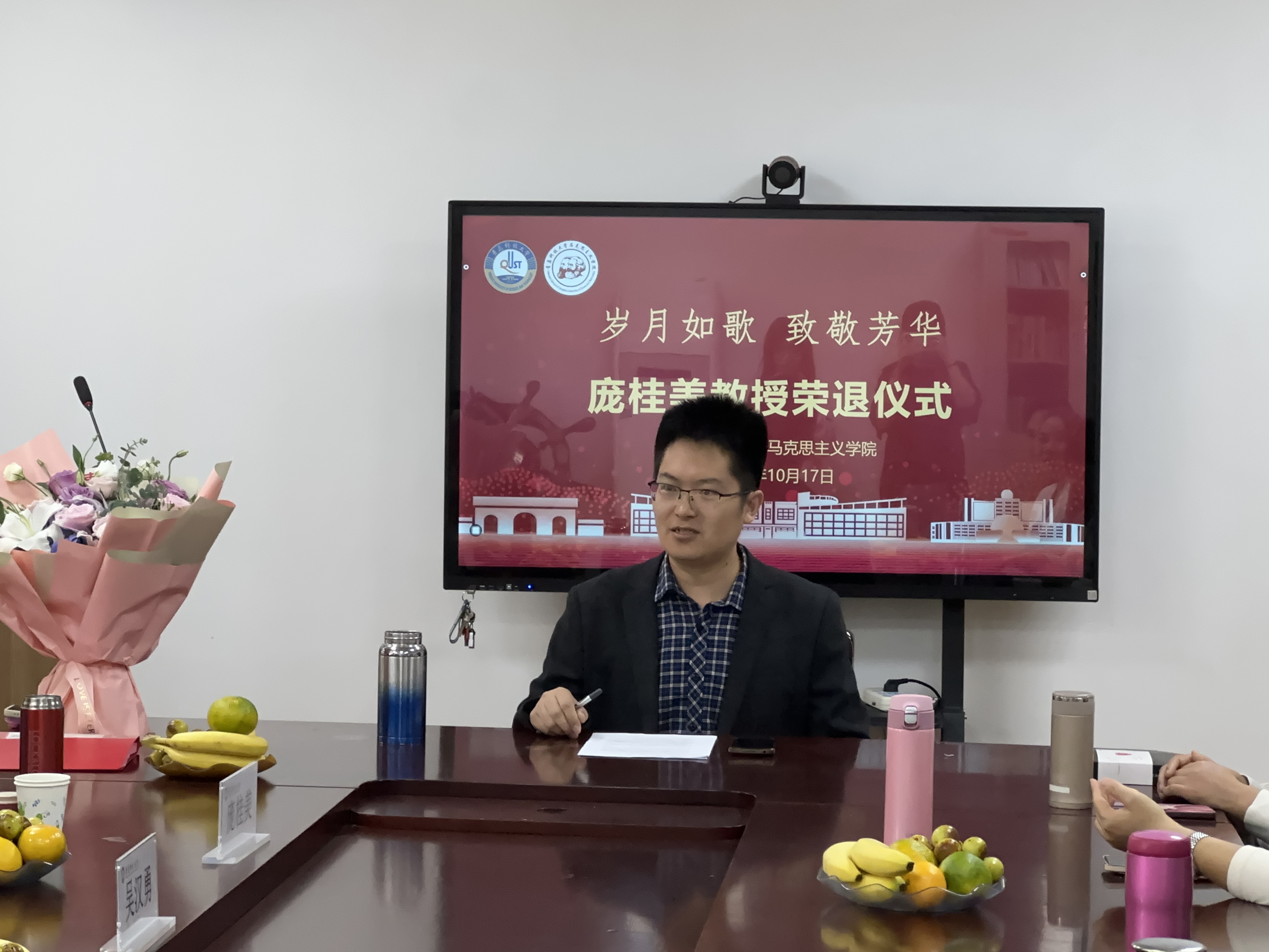 儀式伊始,劉寶福老師發(fā)表致辭,并介紹參加榮休儀式的領(lǐng)導(dǎo)和師生代表。他講述了龐桂美教授在馬克思主義學(xué)院發(fā)展中所做出的貢獻(xiàn),與師生們共同回憶了龐桂美教授為學(xué)校事業(yè)發(fā)展奉獻(xiàn)的歲月芳華以及走過(guò)的奮斗足跡。