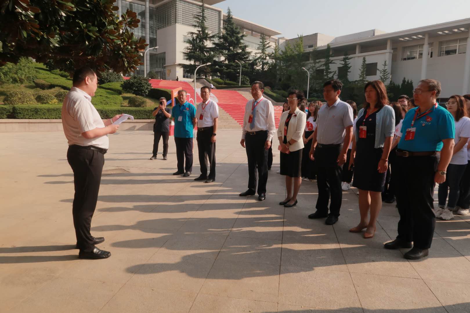 參加儀式領導合影留念