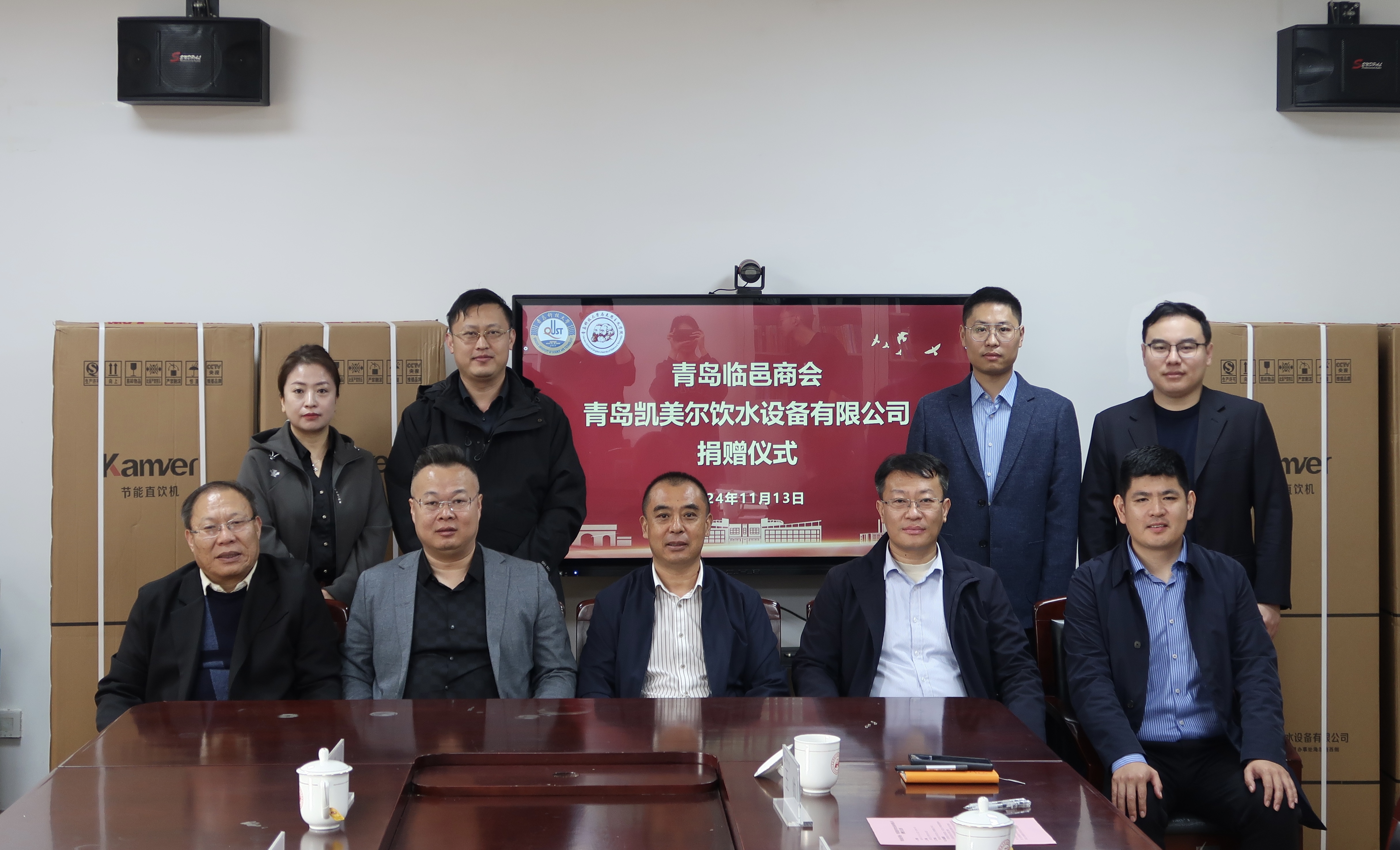 11月13日上午,青島臨邑商會(huì)、青島凱美爾飲水設(shè)備有限公司捐贈(zèng)儀式于馬克思主義學(xué)院2010會(huì)議室舉行。青島臨邑商會(huì)會(huì)長(zhǎng)鄭京衛(wèi),青島凱美爾飲水設(shè)備有限公司董事長(zhǎng)、青島臨邑商會(huì)副會(huì)長(zhǎng)肖安平,青島凱美爾飲水設(shè)備有限公司總經(jīng)理李夢(mèng),青島臨邑商會(huì)副秘書(shū)長(zhǎng)滕平瑞、王婧,青島科技大學(xué)合作發(fā)展處處長(zhǎng)王帥,青島科技大學(xué)馬克思主義學(xué)院黨總支書(shū)記李真,青島科技大學(xué)黨委委員、馬克思主義學(xué)院院長(zhǎng)曹勝出席捐贈(zèng)儀式。儀式由青島科技大學(xué)馬克思主義學(xué)院副院長(zhǎng)郭江龍主持。