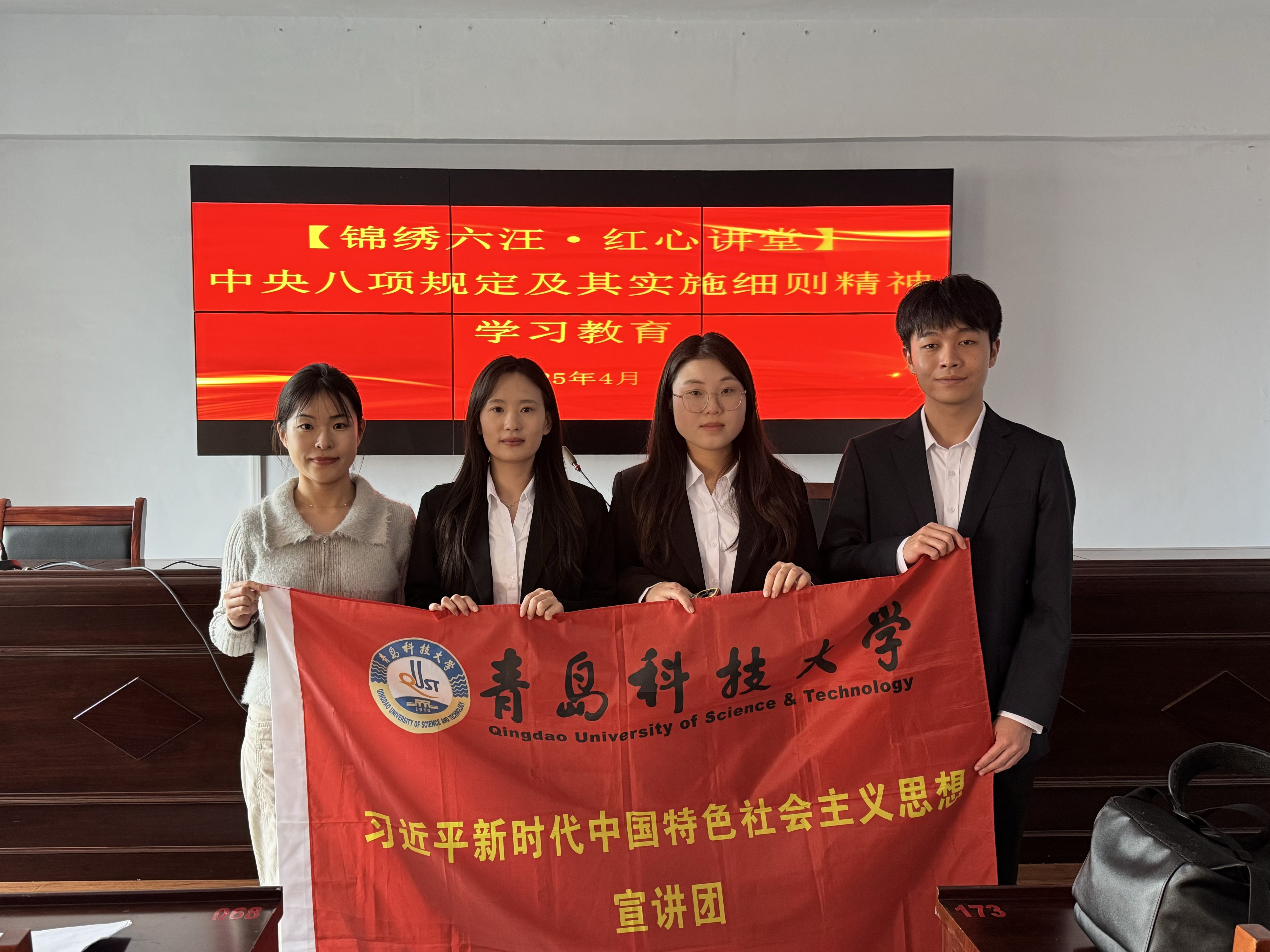 為深入貫徹落實(shí)中央八項(xiàng)規(guī)定精神,引導(dǎo)黨員干部筑牢理想信念根基、錘煉過硬作風(fēng),4月18日下午,馬克思主義學(xué)院習(xí)近平新時(shí)代中國特色社會(huì)主義思想宣講團(tuán)走進(jìn)黃島區(qū)六汪鎮(zhèn)開展黨風(fēng)廉政教育主題宣講活動(dòng),六汪鎮(zhèn)黨員代表、鎮(zhèn)青年干部代表共計(jì)四十余人參加此次活動(dòng)。