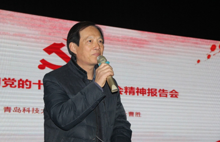12月10日上午,德州科技職業(yè)學院青島校區(qū)舉行黨的十九屆五中全會精神宣講報告會,青島市委教育工委黨的十九屆五中全會精神教育系統(tǒng)宣講團成員——青島科技大學馬克思主義學院院長、教授曹勝為學院300多名黨員干部、思政教師、團學干部等作了宣講報告。