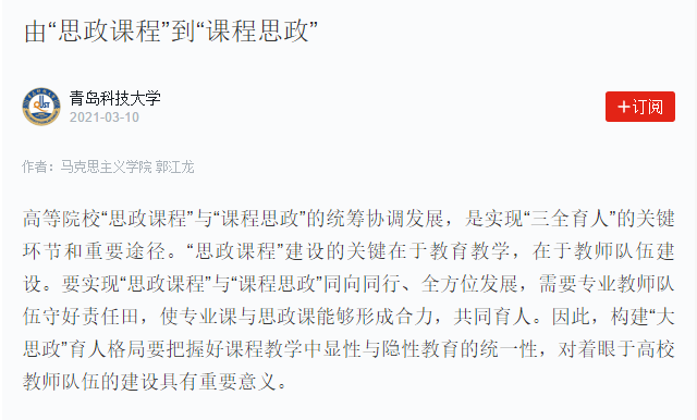 高等院校“思政課程”與“課程思政”的統(tǒng)籌協(xié)調(diào)發(fā)展,是實現(xiàn)“三全育人”的關(guān)鍵環(huán)節(jié)和重要途徑。“思政課程”建設(shè)的關(guān)鍵在于教育教學(xué),在于教師隊伍建設(shè)。要實現(xiàn)“思政課程”與“課程思政”同向同行、全方位發(fā)展,需要專業(yè)教師隊伍守好責(zé)任田,使專業(yè)課與思政課能夠形成合力,共同育人。因此,構(gòu)建“大思政”育人格局要把握好課程教學(xué)中顯性與隱性教育的統(tǒng)一性,對著眼于高校教師隊伍的建設(shè)具有重要意義。