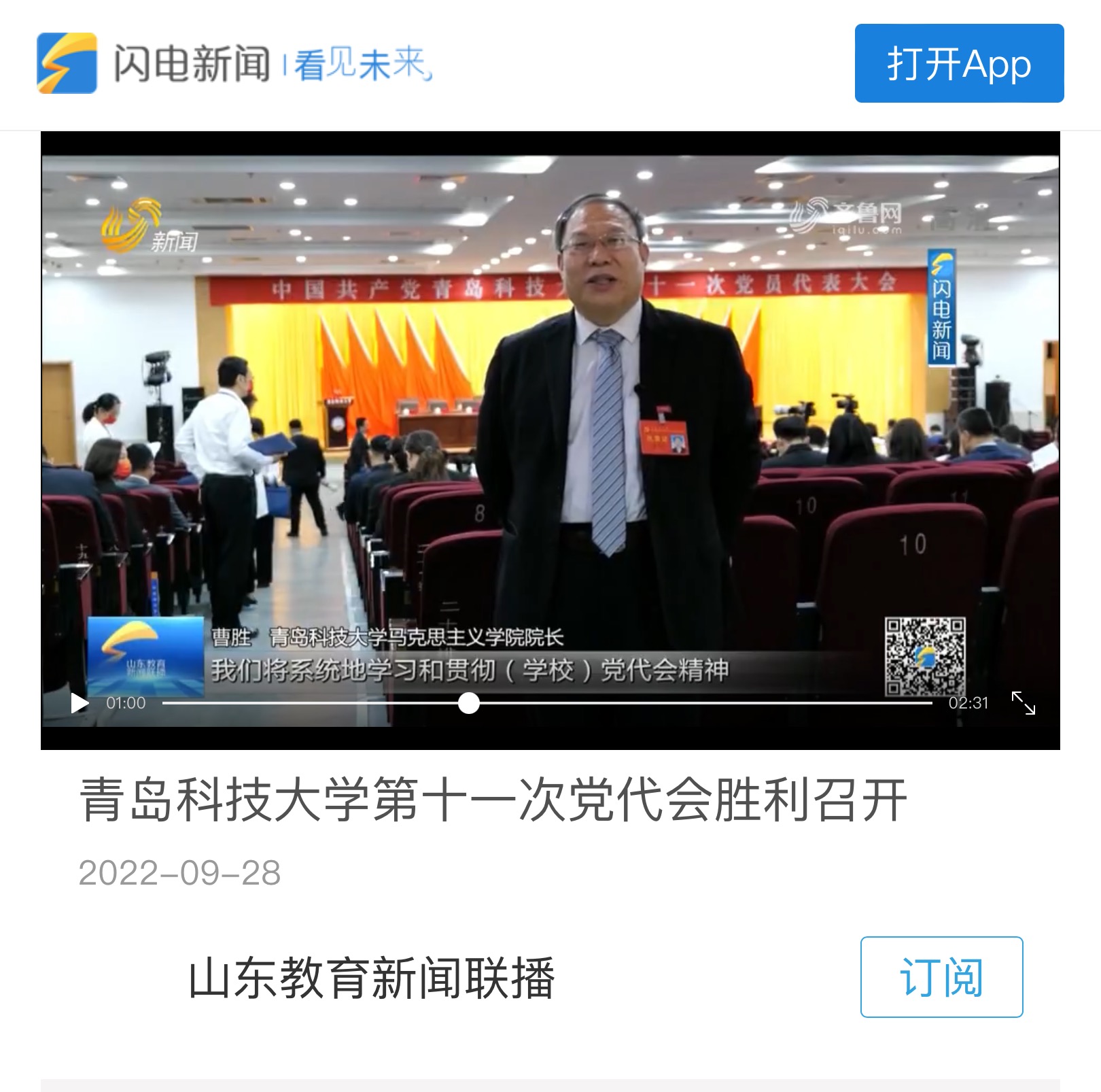 2022年9月24日,青島科技大學(xué)馬克思主義學(xué)院院長曹勝作為青島科技大學(xué)第十一次黨員代表大會代表接受山東廣播電視臺采訪。