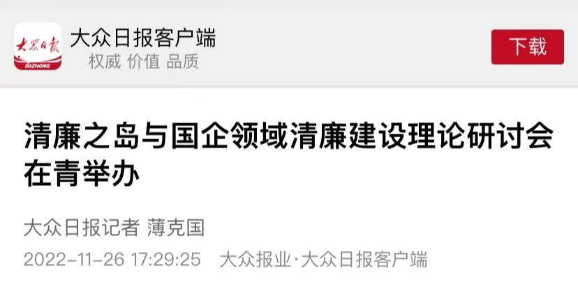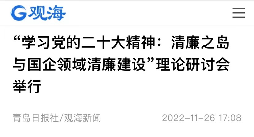 11月26日,“學習黨的二十大精神:清廉之島與國企領域清廉建設”理論研討會在青島召開,中國社科院研究員朱繼東,中國政治學會副會長包心鑒,山東大學黨建研究中心主任王韶興,黨的二十大代表、山東科技大學黨委書記羅公利等專家圍繞學習貫徹黨的二十大精神作報告。