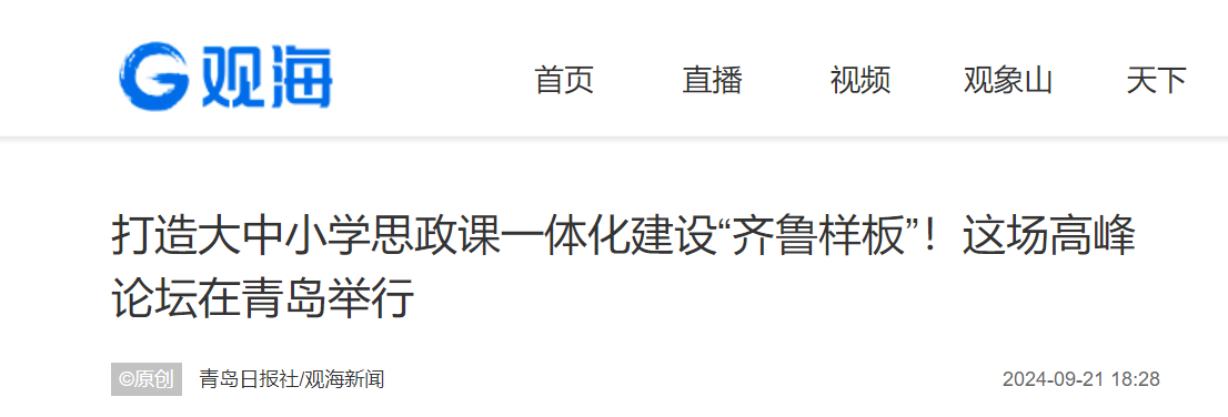 山東省大中小學(xué)思政課一體化建設(shè)指導(dǎo)中心在改革創(chuàng)新中穩(wěn)步推進(jìn)、逐步深化,思政育人新樣態(tài)加速形成。一體化共同體將從方向上用好黨建引領(lǐng)引擎,縱向破除學(xué)段壁壘,實現(xiàn)各學(xué)段教學(xué)內(nèi)容有序進(jìn)階、協(xié)同推進(jìn),橫向搭建互聯(lián)互通思政教育平臺,將一體化共同體建設(shè)成為共商、共建、共享的全省大思政課教學(xué)資源庫,進(jìn)一步加強(qiáng)思想政治教育與思政課一體化設(shè)理論研究、實踐探索和服務(wù)引領(lǐng)。(青島日報/觀海新聞記者 王世鋒)