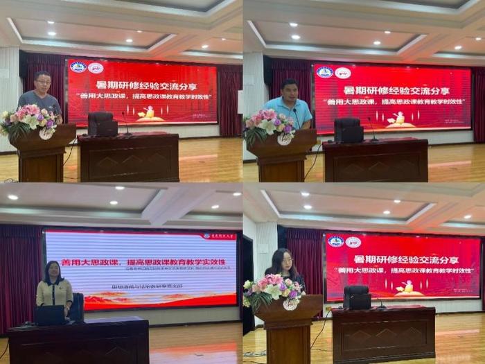 為真正做到“善用大思政課,提高思政課教育教學(xué)時(shí)效性”,各教研室開展暑期研修經(jīng)驗(yàn)交流。郭士民老師代表馬克思主義基本原理教研室黨支部以“在‘行走的思政課’中找尋文化之根、增強(qiáng)文化自信”為題,分享了黨支部參觀西安當(dāng)?shù)丶t色紀(jì)念館,并與延安大學(xué)馬克思主義學(xué)院同仁進(jìn)行交流研討的研修心得。邵長威老師代表馬克思主義中國化教研室黨支部以“跟隨總書記足跡,以‘踐’促學(xué)提升思政育人質(zhì)量”為題,分享了黨支部學(xué)習(xí)塞罕壩精神,并與燕山大學(xué)馬克思主義學(xué)院進(jìn)行交流探討的研修心得。楊曉越老師代表中國近現(xiàn)代基本問題研究教研室黨支部以“行走中感悟文化魅力,賦能思政教學(xué)”為題,分享了黨支部參觀遵義會(huì)議紀(jì)念館及民族博物館等文化遺址,并與貴州師范大學(xué)馬克思主義學(xué)院教師進(jìn)行座談的研修心得。馬麗娟老師代表思想政治教育教研室黨支部以“傳承中國革命文化,賡續(xù)紅色基因”為主題,分享了黨支部赴四川進(jìn)行實(shí)地考察并與成都理工大學(xué)馬克思主義學(xué)院交流探討的研修心得。