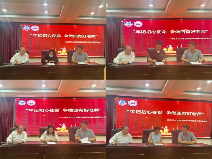 學(xué)院黨政負(fù)責(zé)人與各教研室主任“牢記初心使命 爭(zhēng)做四有好老師”師德師風(fēng)建設(shè)責(zé)任書。各黨支部書記、教研室主任與本教研室教師簽訂師德師風(fēng)建設(shè)責(zé)任書。