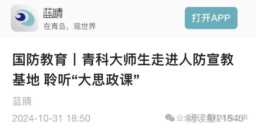 QMG青島廣電10月31日訊 今天是新中國人民防空創(chuàng)立日。人民防空是國之大事,是國防動員建設(shè)的重要內(nèi)容。上午,青島科技大學的部分師生來到青島市人防宣傳教育基地,上了一堂國防教育大思政課。