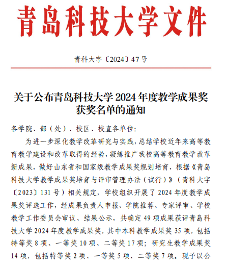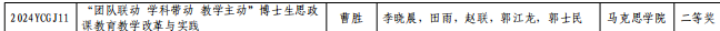 青島科技大學(xué)研究生教學(xué)成果獎(jiǎng)二等獎(jiǎng):“團(tuán)隊(duì)聯(lián)動(dòng) 學(xué)科帶動(dòng) 教學(xué)主動(dòng)”博士生思政課教育教學(xué)改革與實(shí)踐