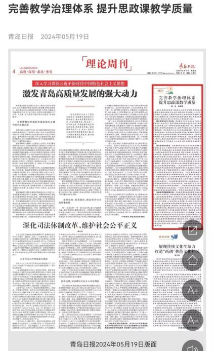 《青島日?qǐng)?bào)》理論版:完善教學(xué)治理體系 提升思政課教學(xué)質(zhì)量