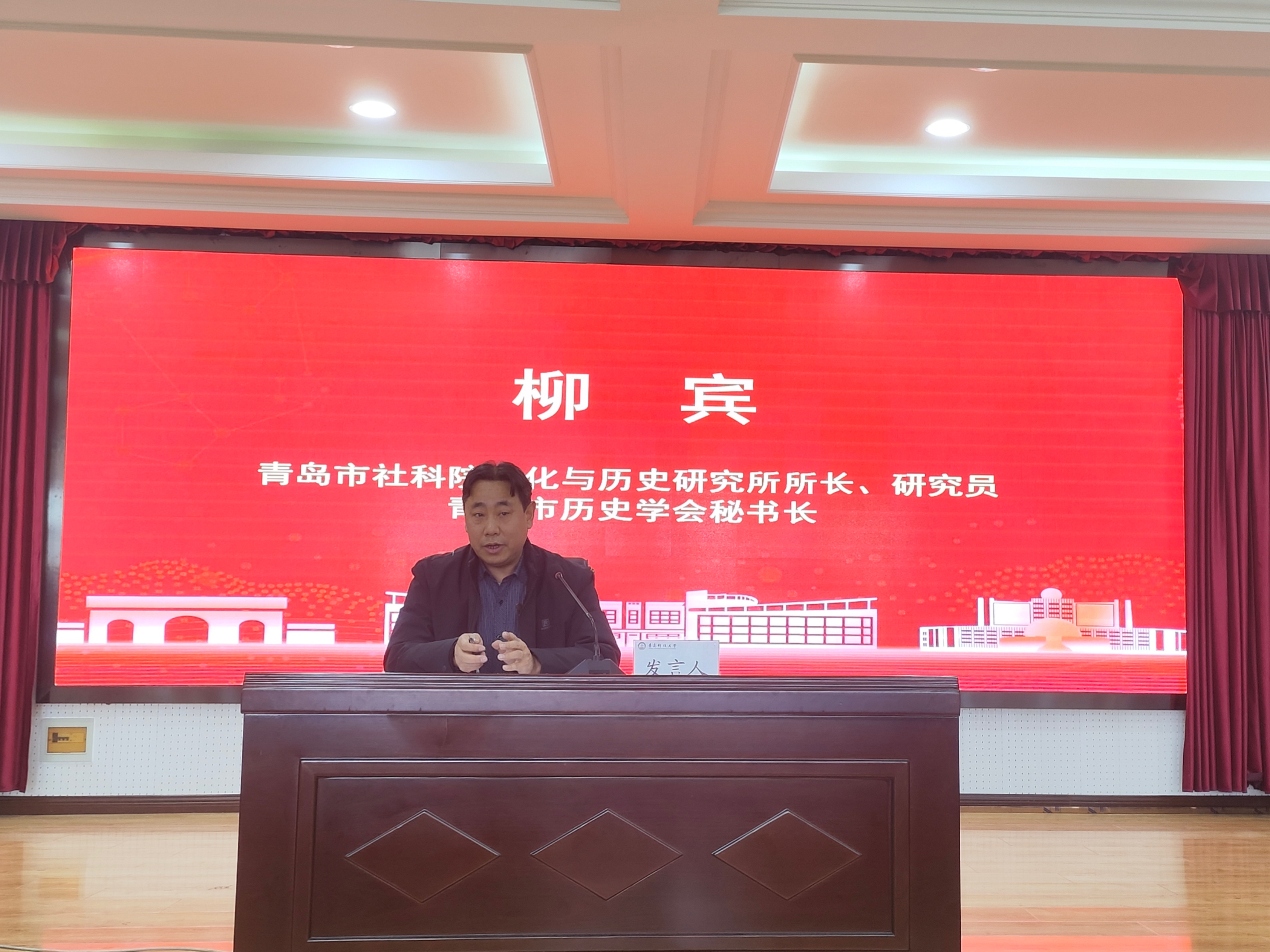 大會(huì)的專(zhuān)家報(bào)告環(huán)節(jié)由青島科技大學(xué)馬克思主義學(xué)院院長(zhǎng)、教授曹勝主持。青島市教育科學(xué)研究院二級(jí)教授、享受?chē)?guó)務(wù)院政府特殊津貼專(zhuān)家、青島市歷史學(xué)會(huì)副會(huì)長(zhǎng)陸安以《從邊緣到中心:現(xiàn)代化進(jìn)程中的青島印跡》為題,青島農(nóng)業(yè)大學(xué)馬克思主義學(xué)院黨總支書(shū)記、教授、青島市歷史學(xué)會(huì)副會(huì)長(zhǎng)修彩波以《正確理解和大力推進(jìn)中國(guó)式現(xiàn)代化》為題作專(zhuān)家報(bào)告。