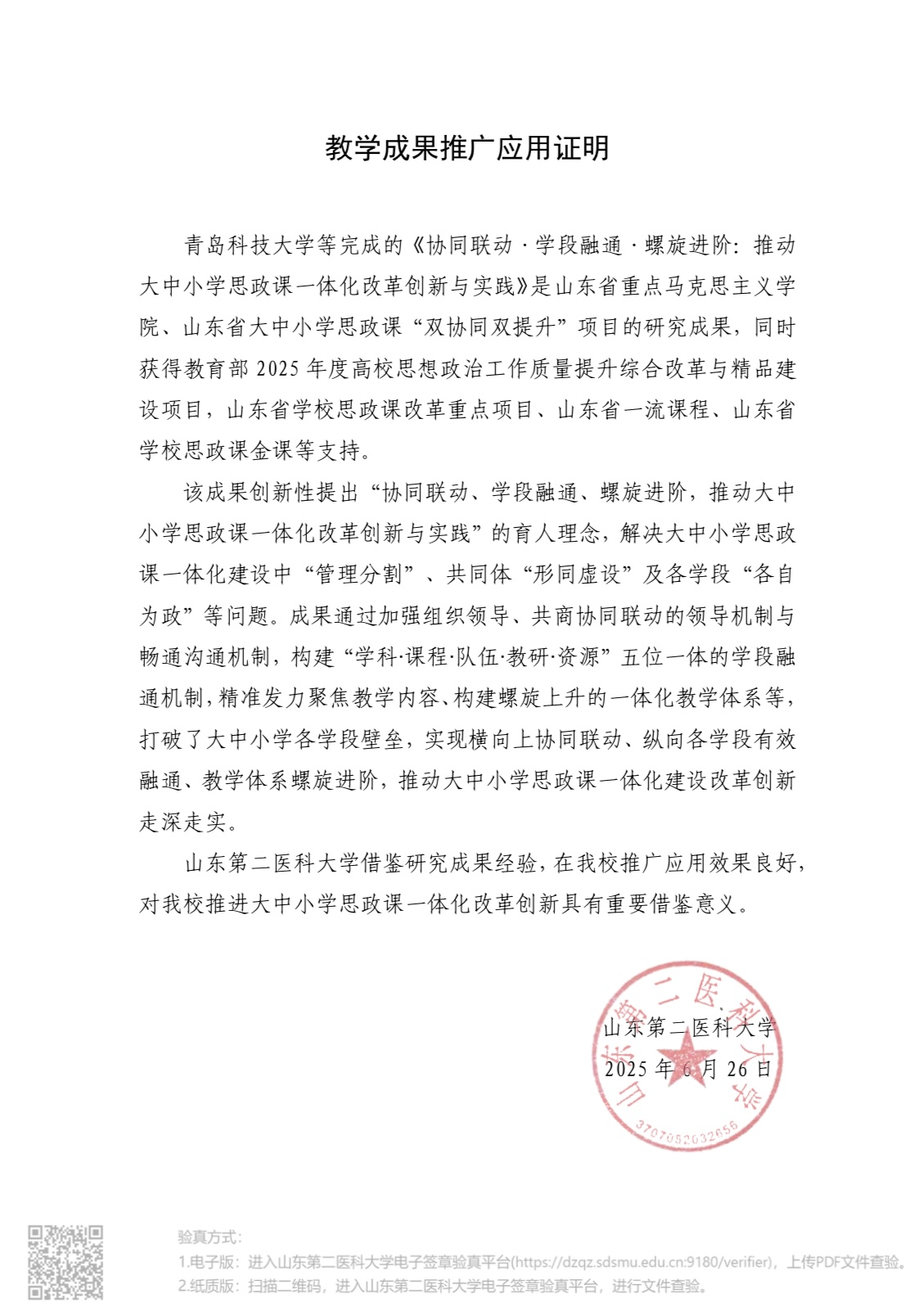 山東第二醫(yī)科大學(xué)教學(xué)成果應(yīng)用及效果證明