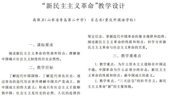 思想政治課教學(xué)202001:《新民主主義革命教學(xué)設(shè)計》,中文核心期刊思想政治課教學(xué)202001:《新民主主義革命教學(xué)設(shè)計》,中文核心期刊