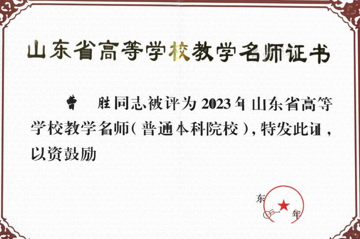 2023年:山東省高等學(xué)校教學(xué)名師證書——曹勝