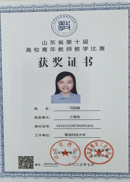 2023年:山東省第十屆高校青年教師教學(xué)比賽三等獎(jiǎng)——馬麗娟