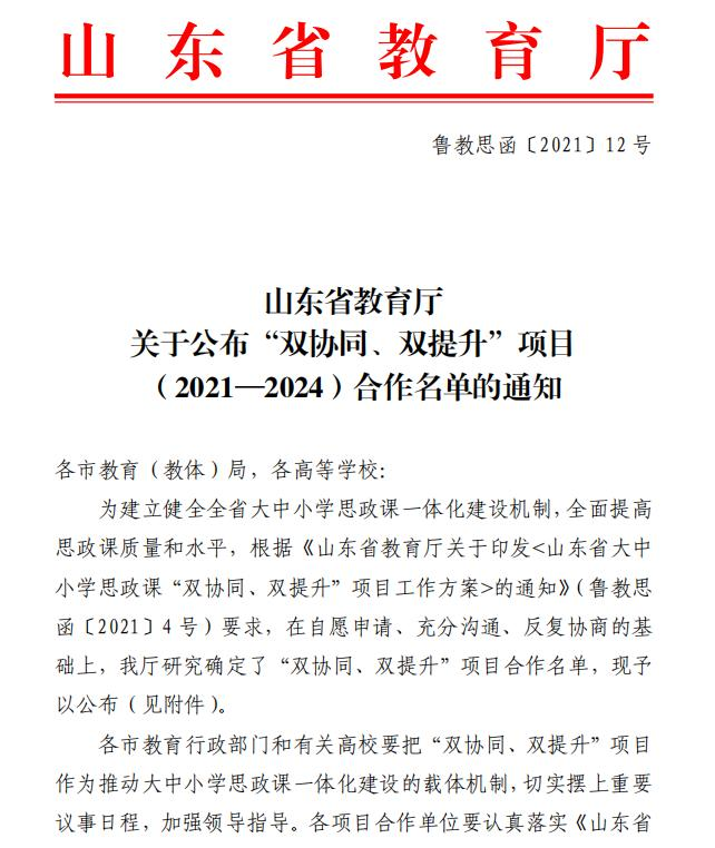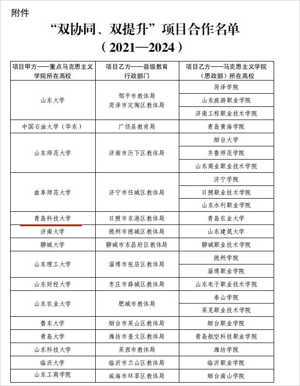 山東省教育廳“雙協(xié)同、雙提升”項(xiàng)目(2021-2024)合作單位