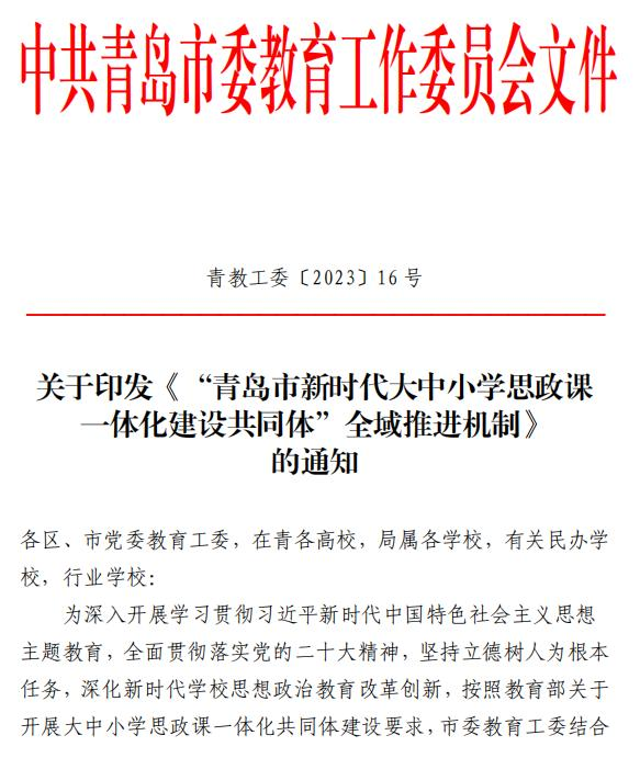 青教工委《“青島市新時(shí)代大中小學(xué)思政課一體化建設(shè)共同體”全域推進(jìn)機(jī)制》召集人協(xié)助單位