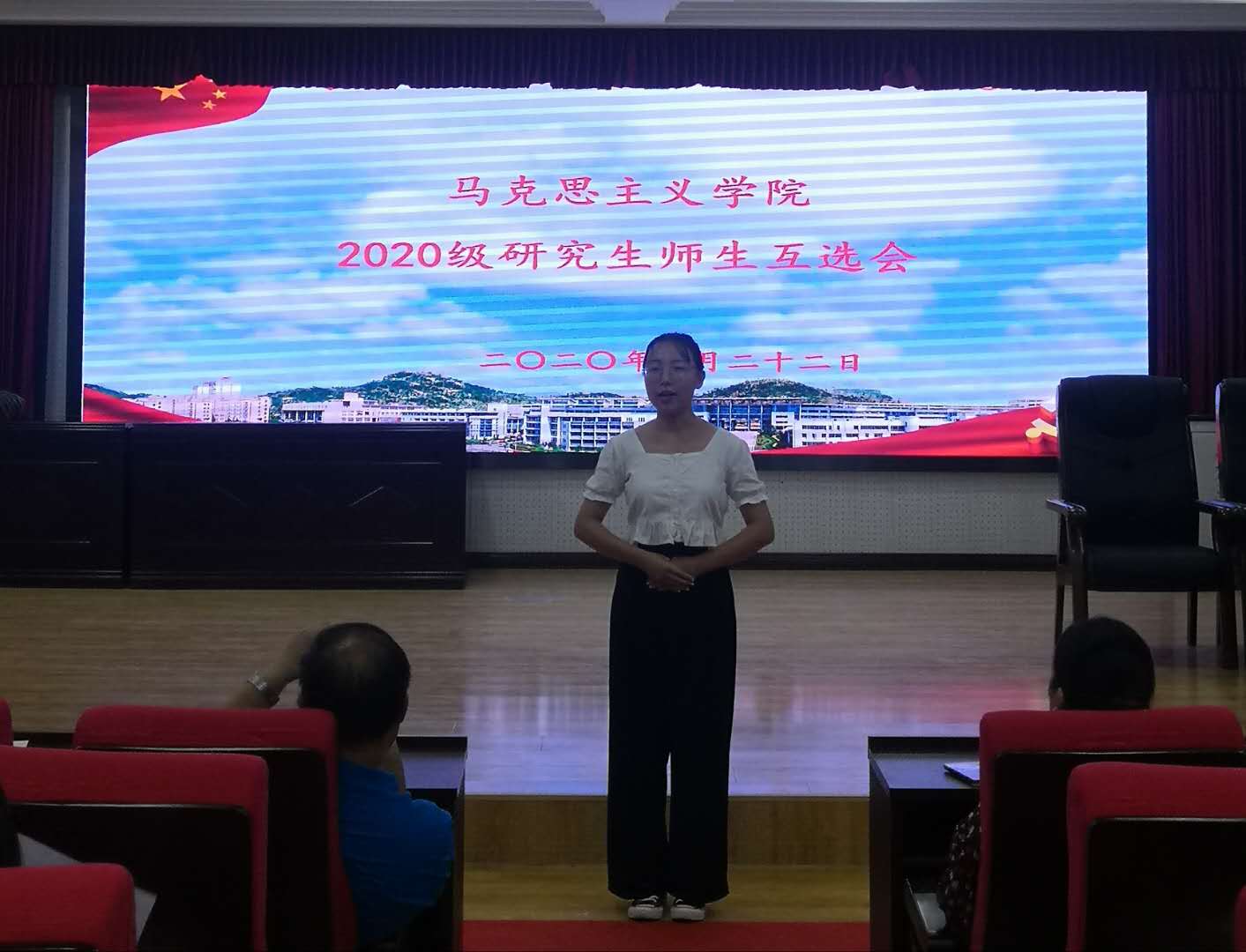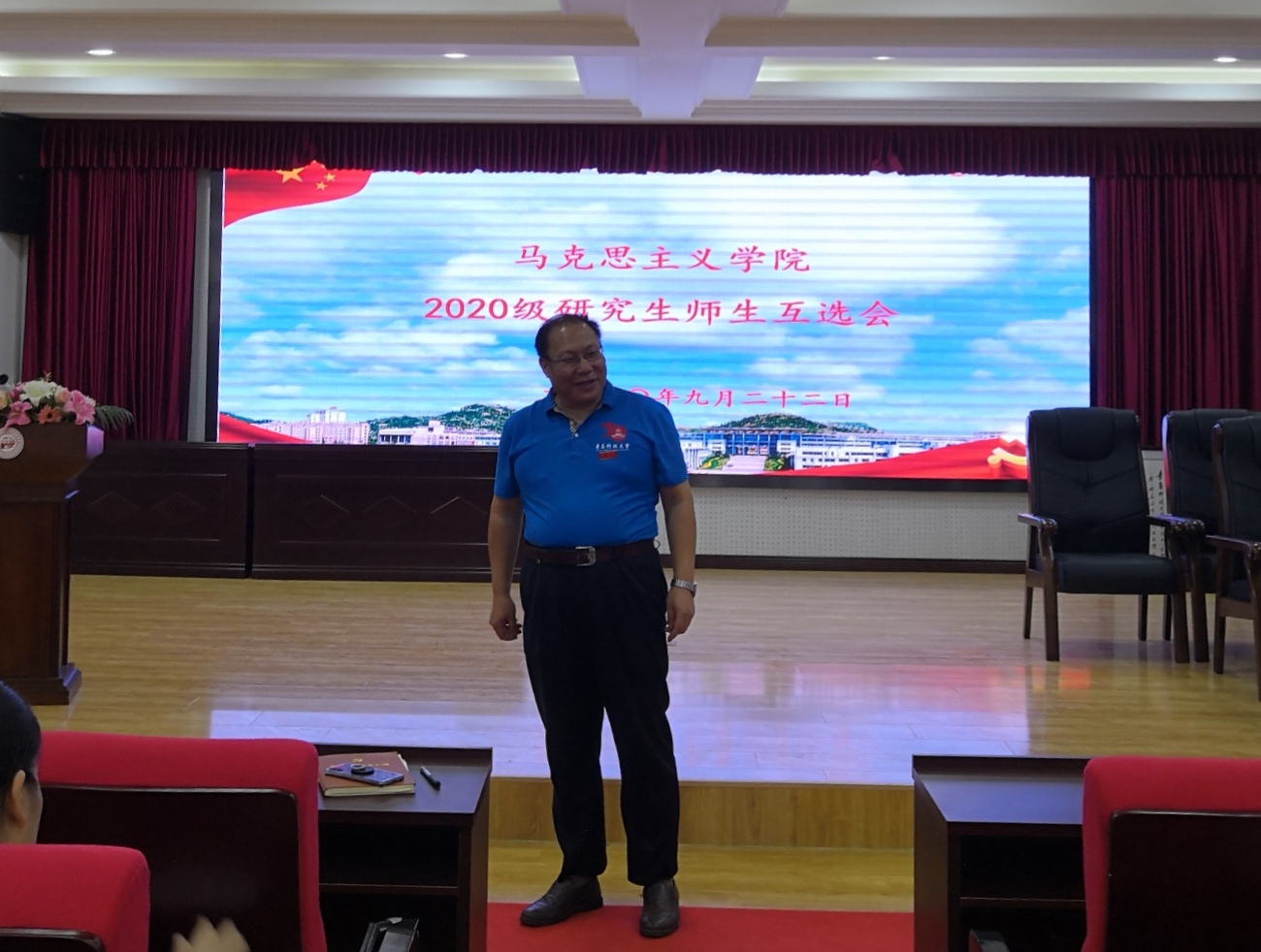 9月22日下午,馬克思主義學(xué)院2020級(jí)碩士研究生師生互選會(huì)于學(xué)術(shù)報(bào)告廳舉行,馬克思主義學(xué)院院長(zhǎng)曹勝、副院長(zhǎng)張運(yùn)君、曲慧敏,各學(xué)科研究生導(dǎo)師,教學(xué)秘書(shū)朱雪老師及2020級(jí)全體新生與會(huì),張運(yùn)君副院長(zhǎng)主持。