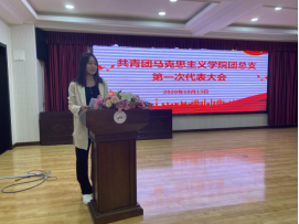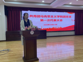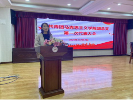 為教育引導(dǎo)廣大青年團(tuán)員堅(jiān)定理想信念、同心同德,激發(fā)青年發(fā)展的蓬勃力量,確保正確工作方向不動(dòng)搖,10月13日下午,馬克思主義學(xué)院于學(xué)術(shù)報(bào)告廳舉行共青團(tuán)馬克思主義學(xué)院團(tuán)總支第一次代表大會(huì)。參加本次大會(huì)的有研究生班主任戴雪麗老師、郭江龍老師、孫倩倩老師和馬院全體在校生。本次大會(huì)由孫倩倩老師主持。