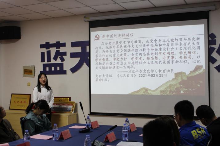即墨區(qū)團(tuán)委副書記馮健同志講話,她談到:“要全面了解中國共產(chǎn)黨百年奮斗的光輝歷程和歷史貢獻(xiàn),不斷從黨的光輝歷史中汲取砥礪奮進(jìn)的智慧和力量。